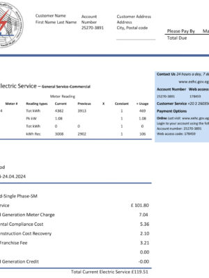 Editable Egypt Utility Bill Templates – Realistic Proof-of-Address PDF Versions