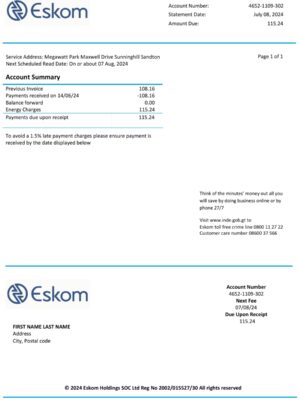 South Africa Utility Bill Templates – Editable 2025 Designs for Verification & UX Simulation