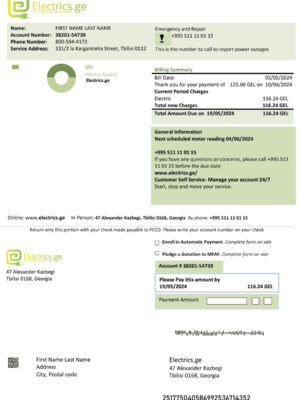Explore editable Georgia utility bill templates inspired by modern utility companies. Realistic layouts are perfect for training and address verification.