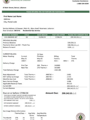 Lebanon Utility Bill Templates – Editable and Realistic Layouts for Verification Testing