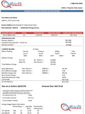 Explore Qatar Utility Bill Templates – Editable Realistic Layouts for Professional Use