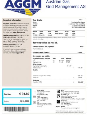 Get editable Austrian utility bill PDFs designed for realistic presentation and training purposes. Clean, accurate and ready for visual simulation in 2025.