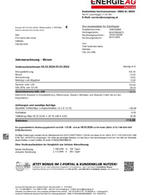 Austria Utility Bill Templates – Editable PDF Versions for UX and Training Projects
