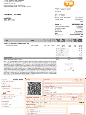 Editable Slovenian utility bill templates for proof of address and document demos. Each design is professionally formatted.