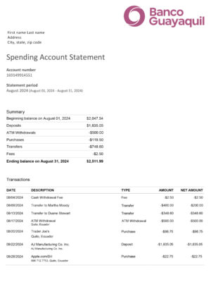 Ecuador utility bill template