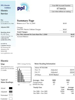 Pennsylvania home utility bills or