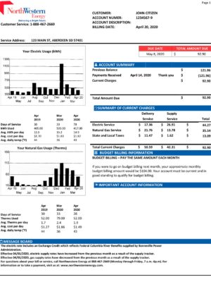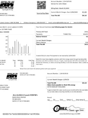 If you need a reliable utility bill template for the state of South Dakota, you’ve come to the right place. We offer editable billing statements in PDF format that replicate water, gas, electricity, and internet bills. These documents can be used as realistic proof of residency or for address verification. You can easily customize all details — name, address, dates, amounts — to create an accurate and convincing utility invoice.