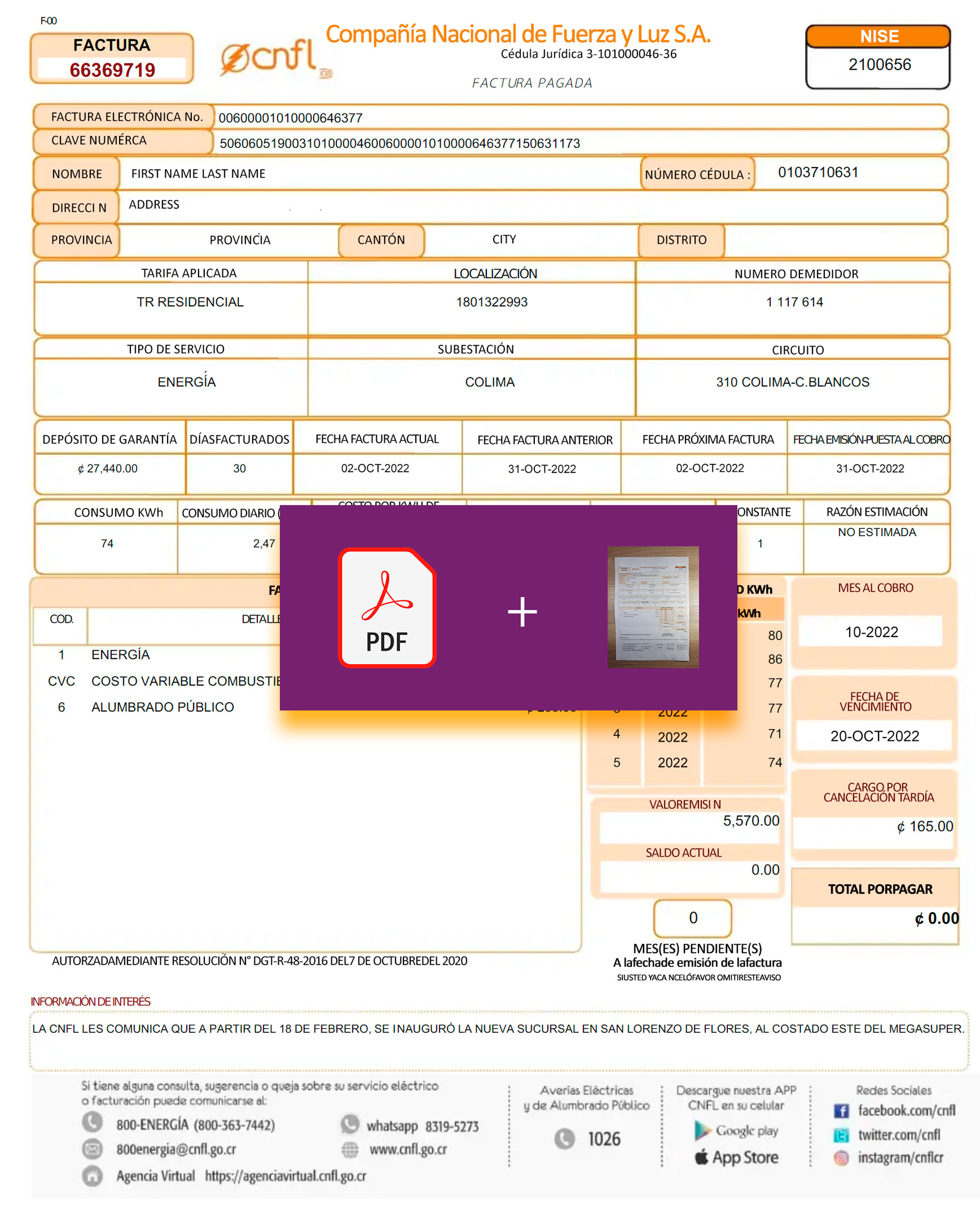 You’ll receive editable PDF and JPEG files at 300 DPI, structured to mirror the real CNFL electricity statement. Editable sections include customer name, service address, billing cycle, usage, and amount due. The package includes secure checkout, 24-hour turnaround, free revisions until approval, and 24/7 customer support for any post-delivery adjustments.