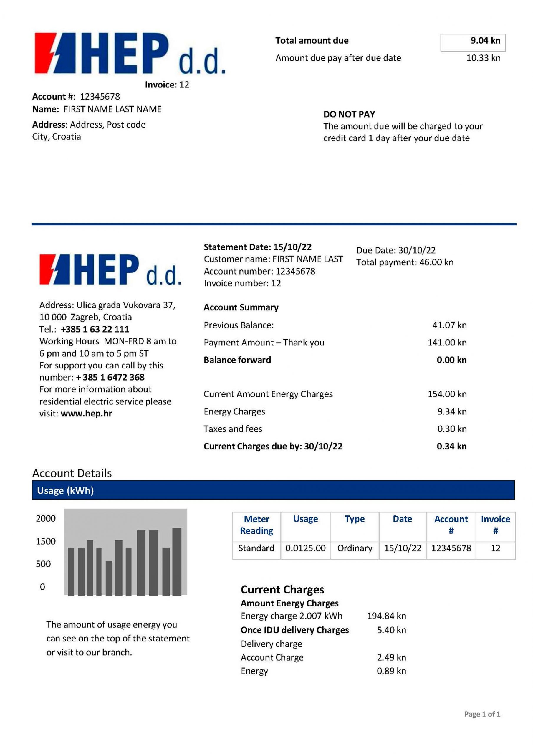1️⃣ Choose the HEP Croatia electricity bill template.