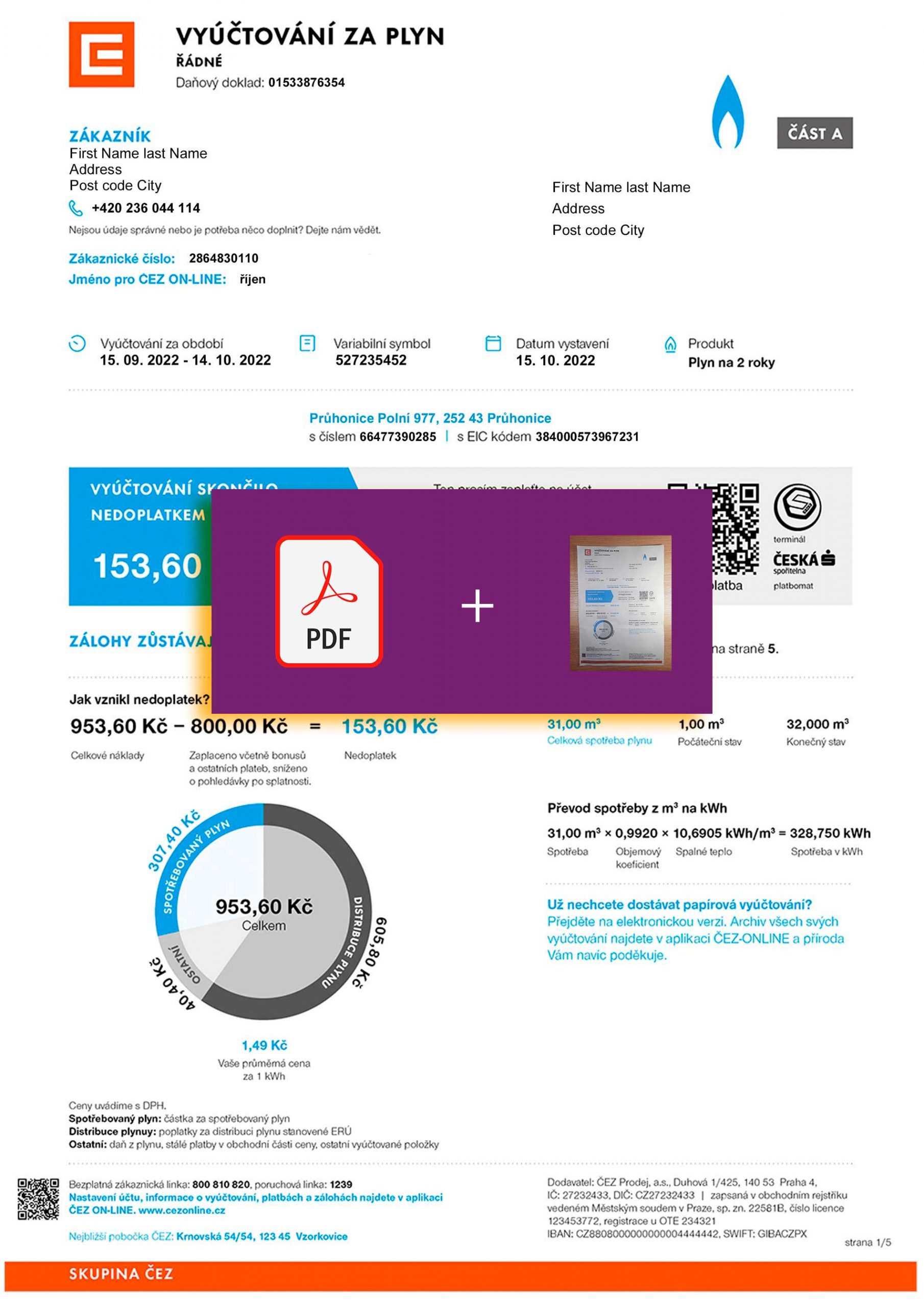 Your package includes a professionally designed PDF and JPEG version of the Czech gas utility statement. Editable sections allow input of customer name, address, billing cycle, meter readings, and total charges. Every order comes with free revisions until approved, a 24-hour turnaround, secure checkout, and round-the-clock support for added convenience.