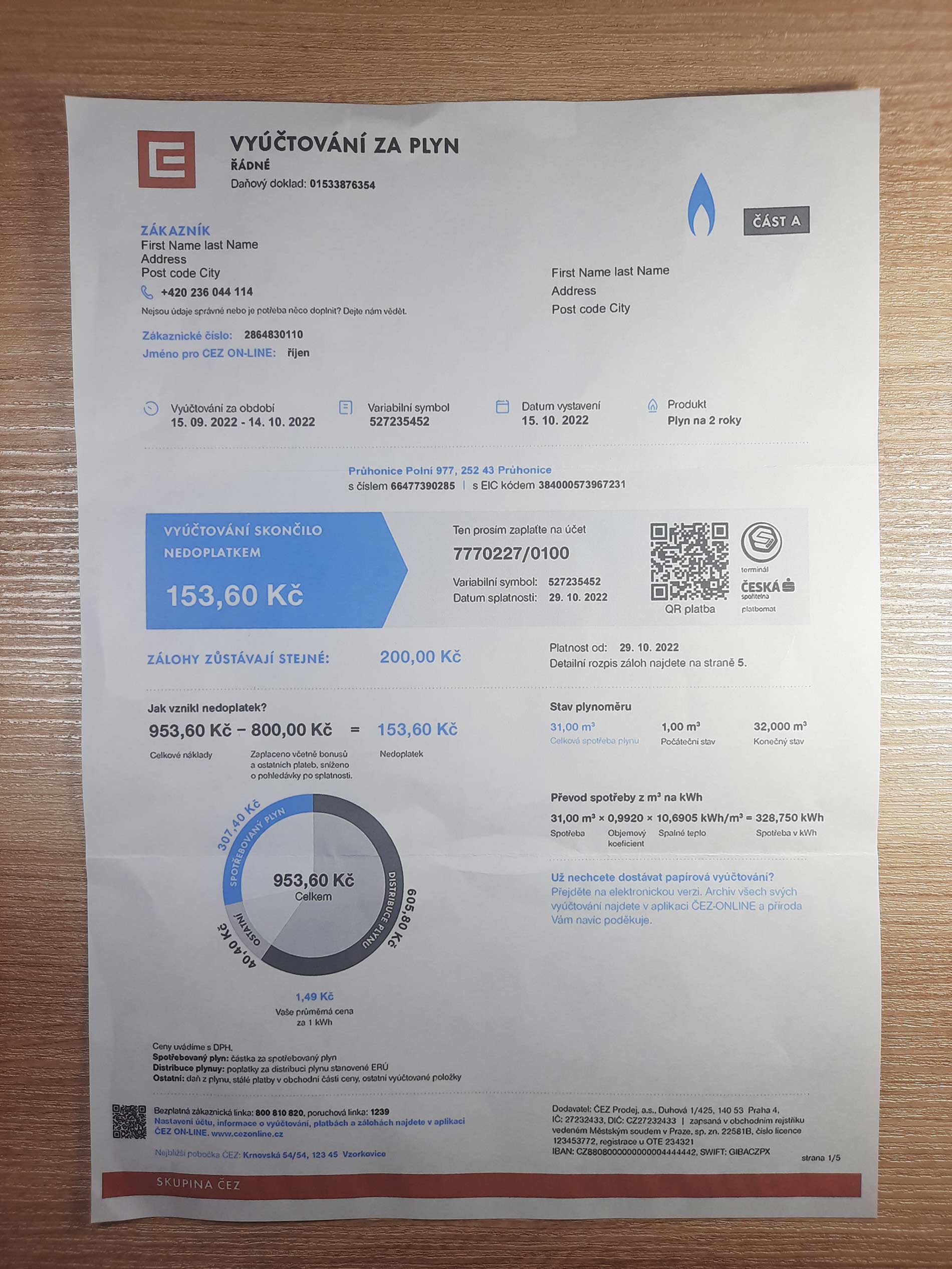 1. Choose the editable gas utility bill for Czech Republic.