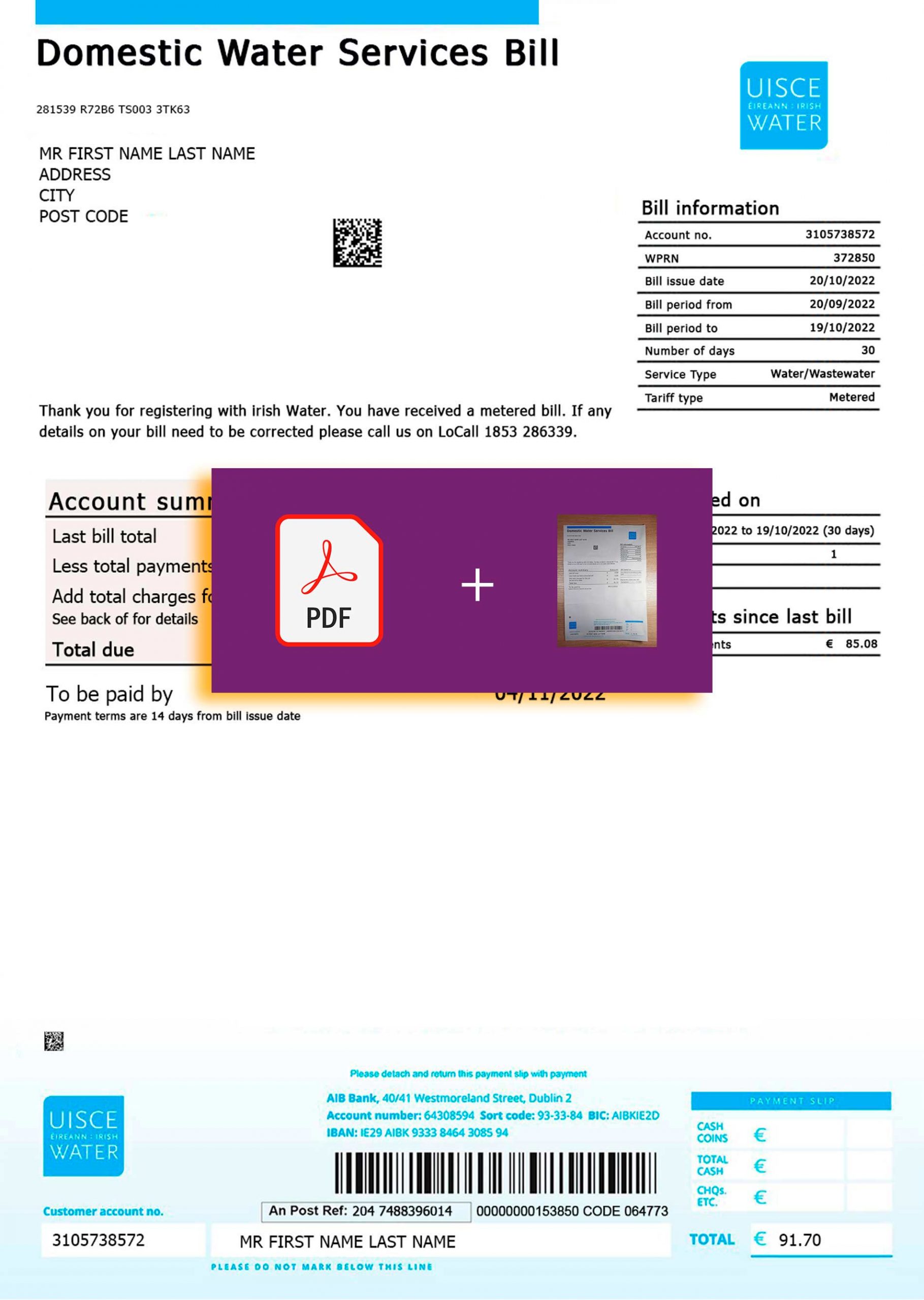 Your order includes high-resolution PDF and JPEG formats at 300 DPI. The file layout follows a standard Irish utility format with editable sections for customer name, billing address, billing period, and total usage or amount due. You’ll also receive free revisions until approved, 24-hour turnaround, secure checkout, and 24/7 customer support to ensure complete satisfaction and accuracy.