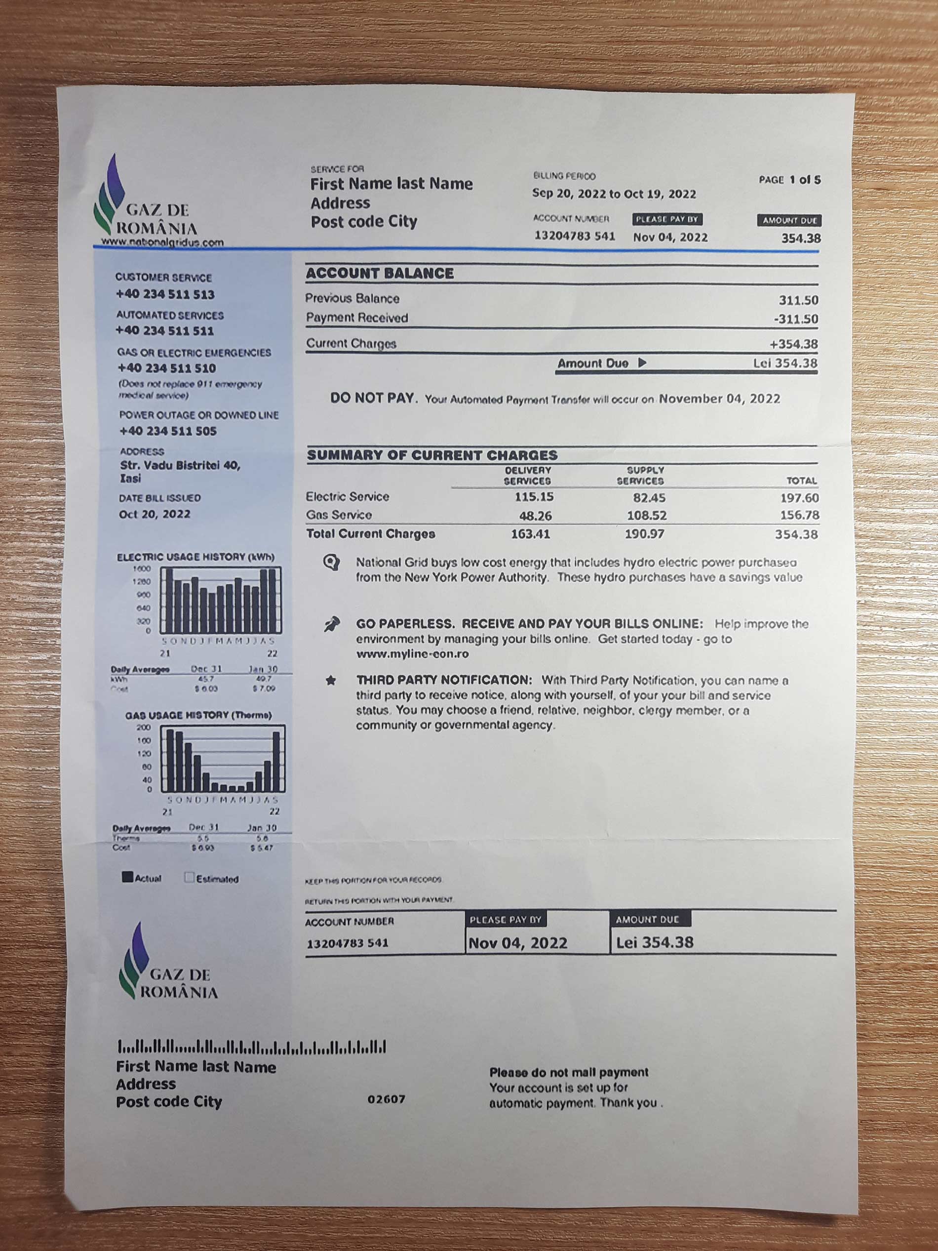 When you’ve just arrived in Romania or recently changed address, getting a gas bill that reflects your current situation isn’t always straightforward. The team takes your details, builds the document, and sends it to your email as both a PDF and JPEG so it’s ready to submit wherever it’s needed. Delivery lands within 24 hours, no chasing printers or utility offices.