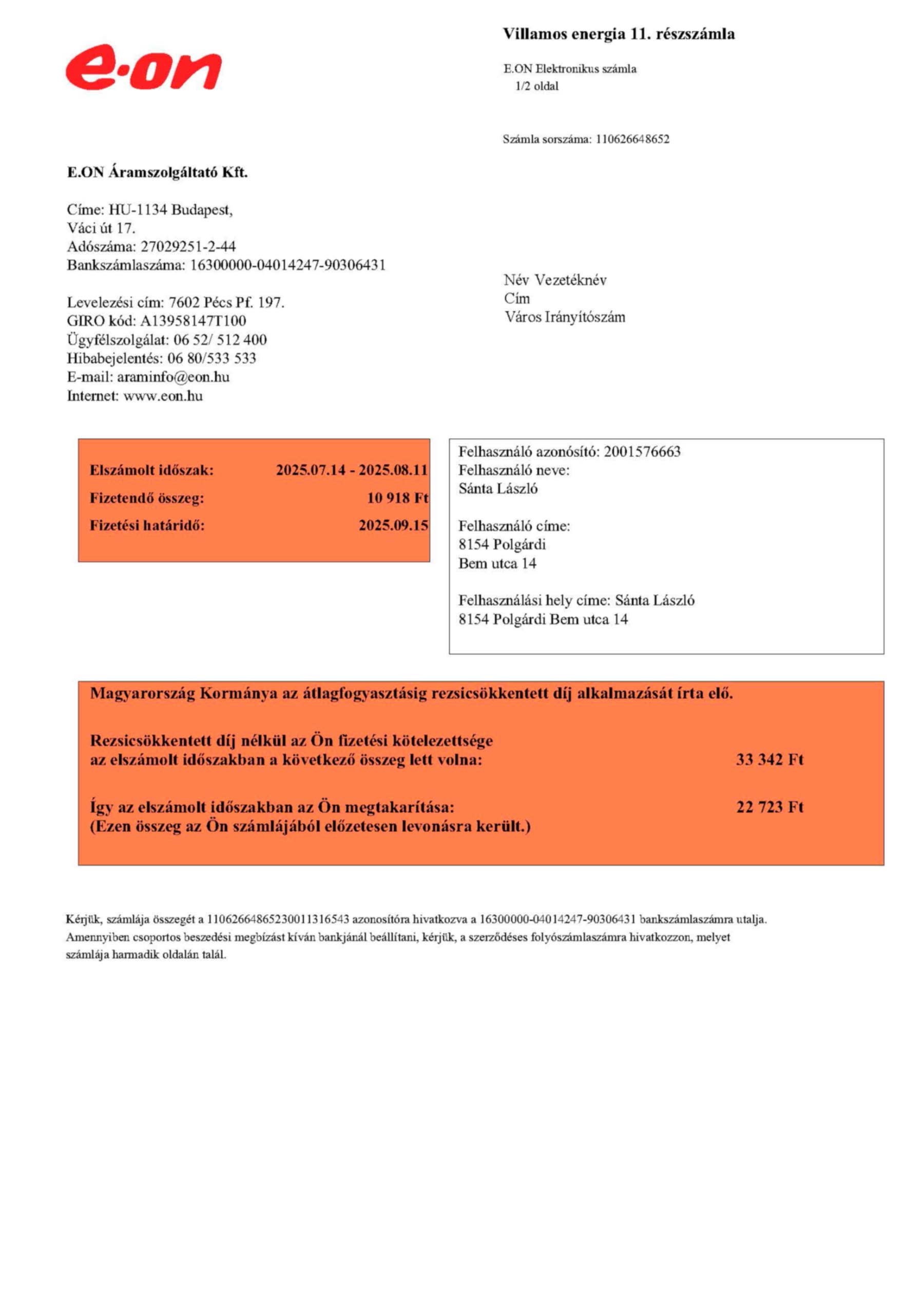 This E.ON Hungary template is designed for lawful, compliant, and educational use — ideal for document review, system testing, proof-of-address validation, and interface simulations. It supports ethical workflows where POA and KYC testing are necessary for internal or demo purposes.