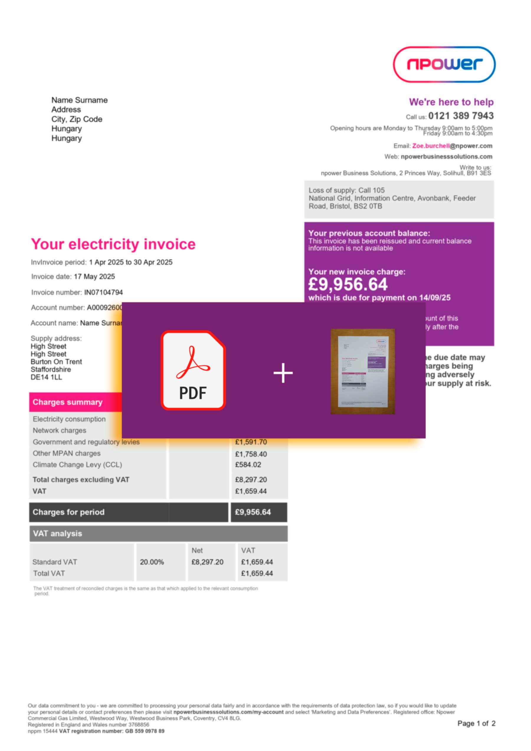 This package includes JPEG or PDF + JPEG formats at 300 DPI quality. The file aligns with the Npower Hungary layout and contains editable fields for customer name, address, billing cycle, and totals. You’ll receive secure checkout, free revisions until approval, 24-hour turnaround, and 24/7 support — providing a smooth and confidential process from order to final delivery.