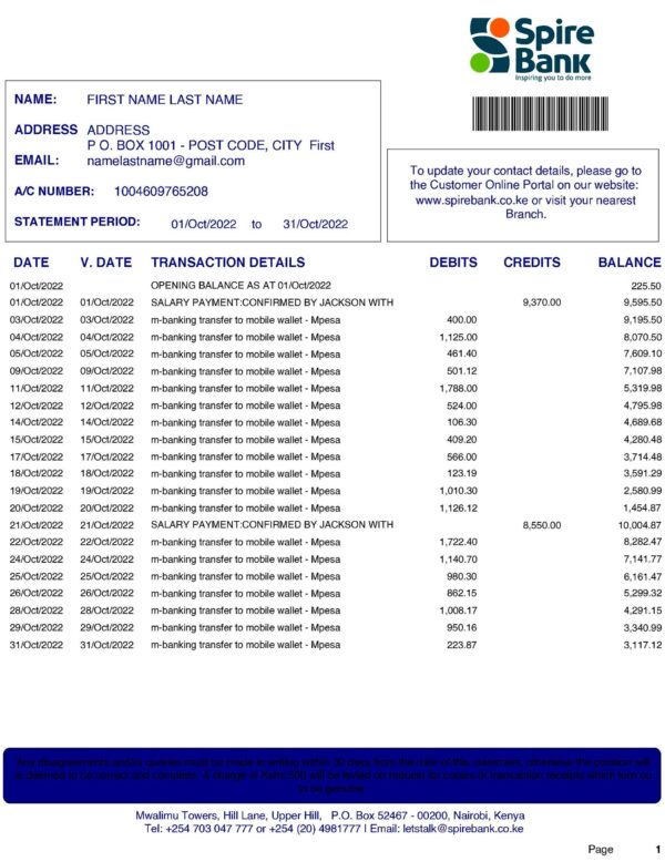 Delivered in both PDF and JPEG formats, this Kenya gas statement maintains a professional layout consistent with standard billing designs. Editable fields include customer name, address, billing period, and consumption details. The order includes free revisions until approval, secure checkout, and 24-hour turnaround — all supported by 24/7 customer assistance for a smooth experience.