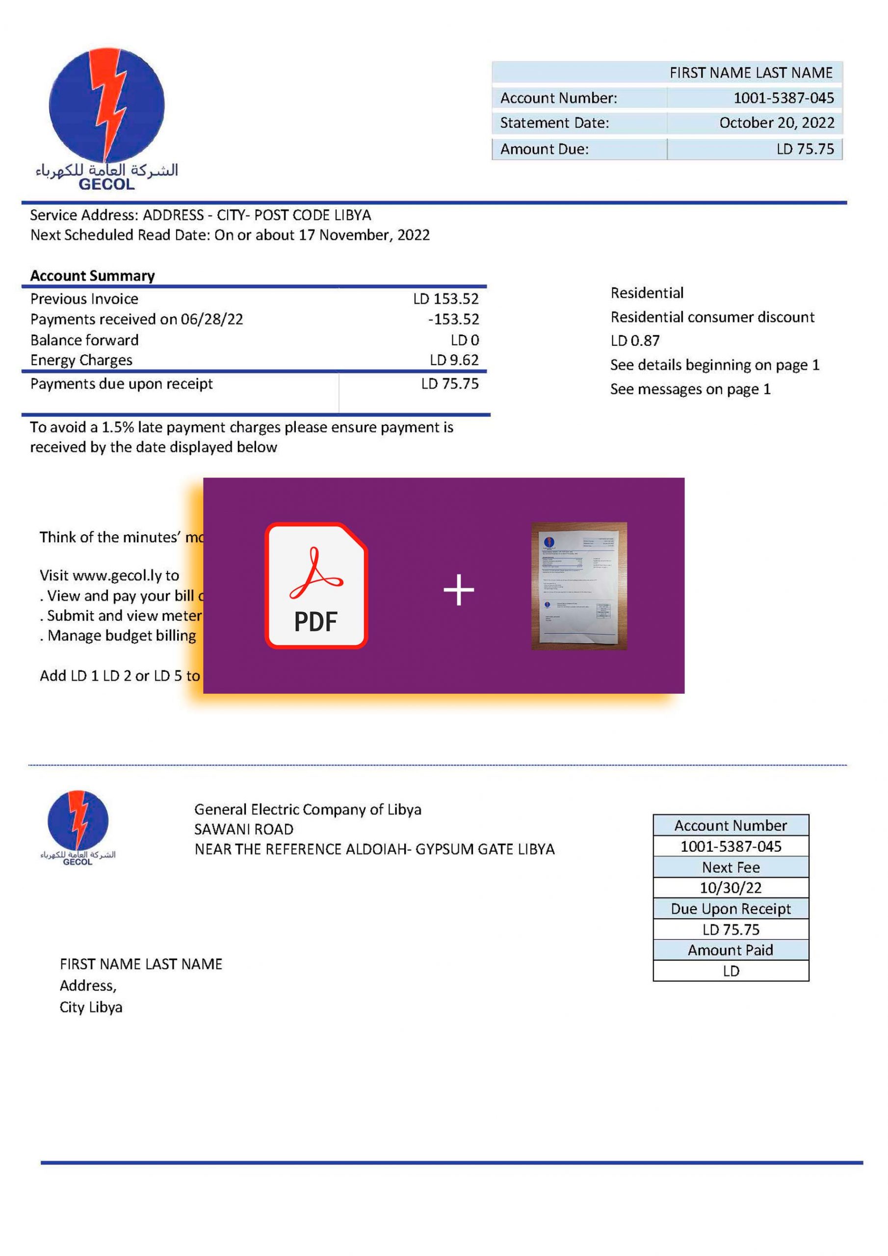 1️⃣ Choose the Libya utility bill PDF.