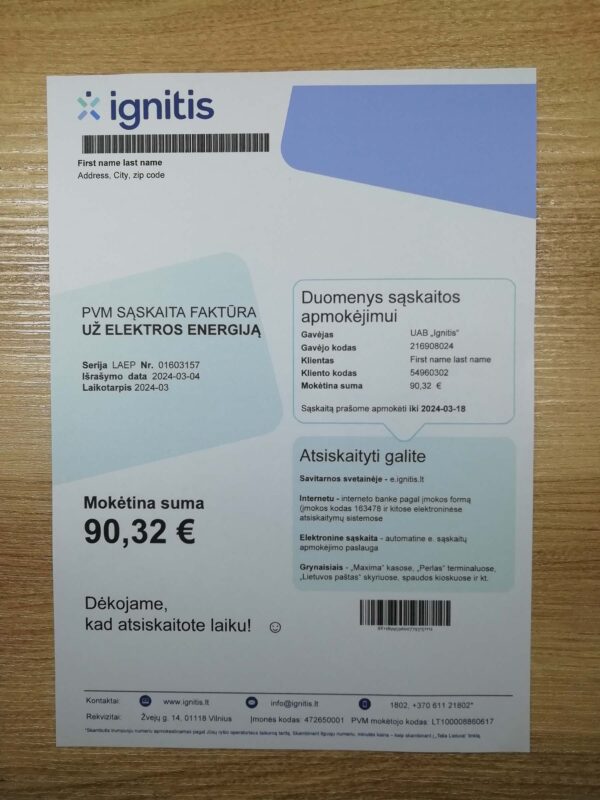Just moved to Lithuania and your utility accounts are registered, but an official bill hasn’t arrived yet when address verification is already needed. Pass your details to the team and they’ll put together a Lithuania utility bill in your name, delivered to your email as both PDF and JPEG. Fast and hassle-free — ready within 24 hours, frequently sooner.