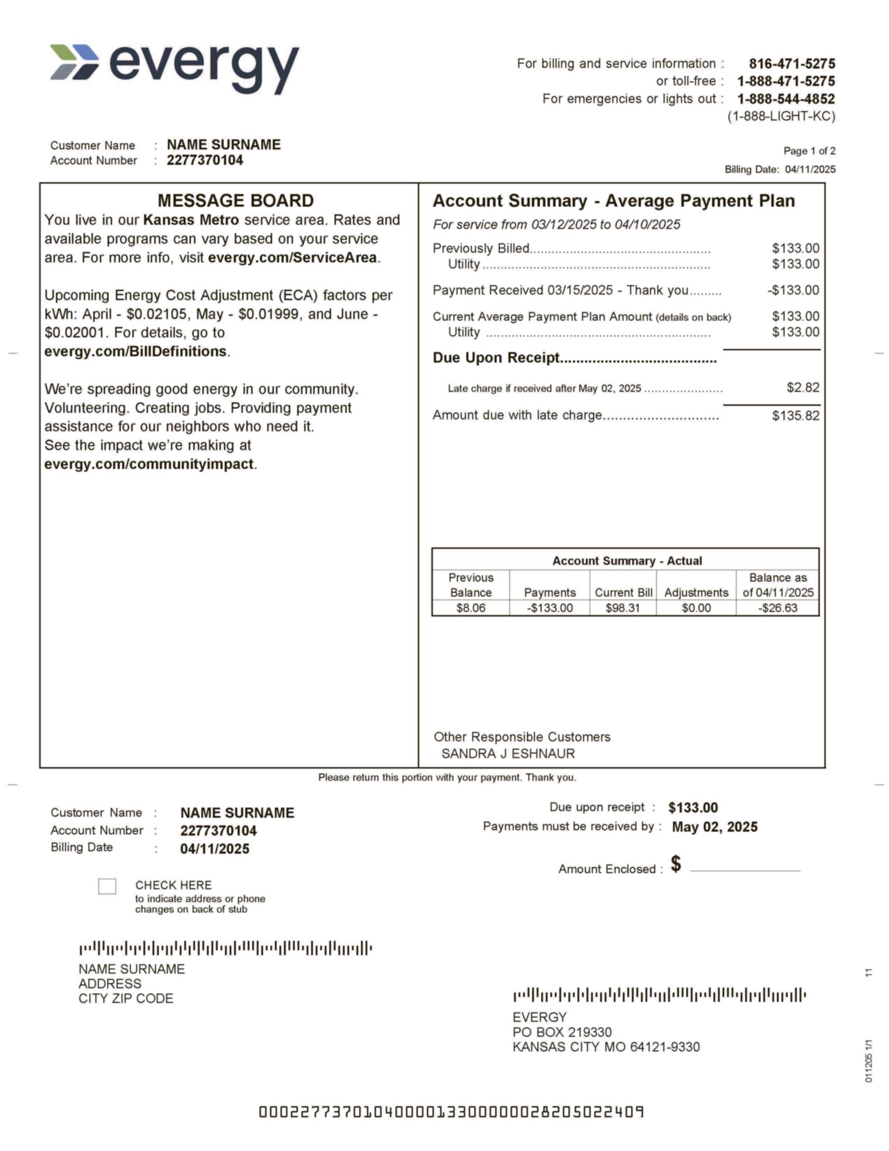 This editable Evergy bill is designed for ethical purposes such as documentation review, KYC/POA verification training, and internal UI/UX visualization. It should always be used responsibly and within lawful, compliance-friendly environments.