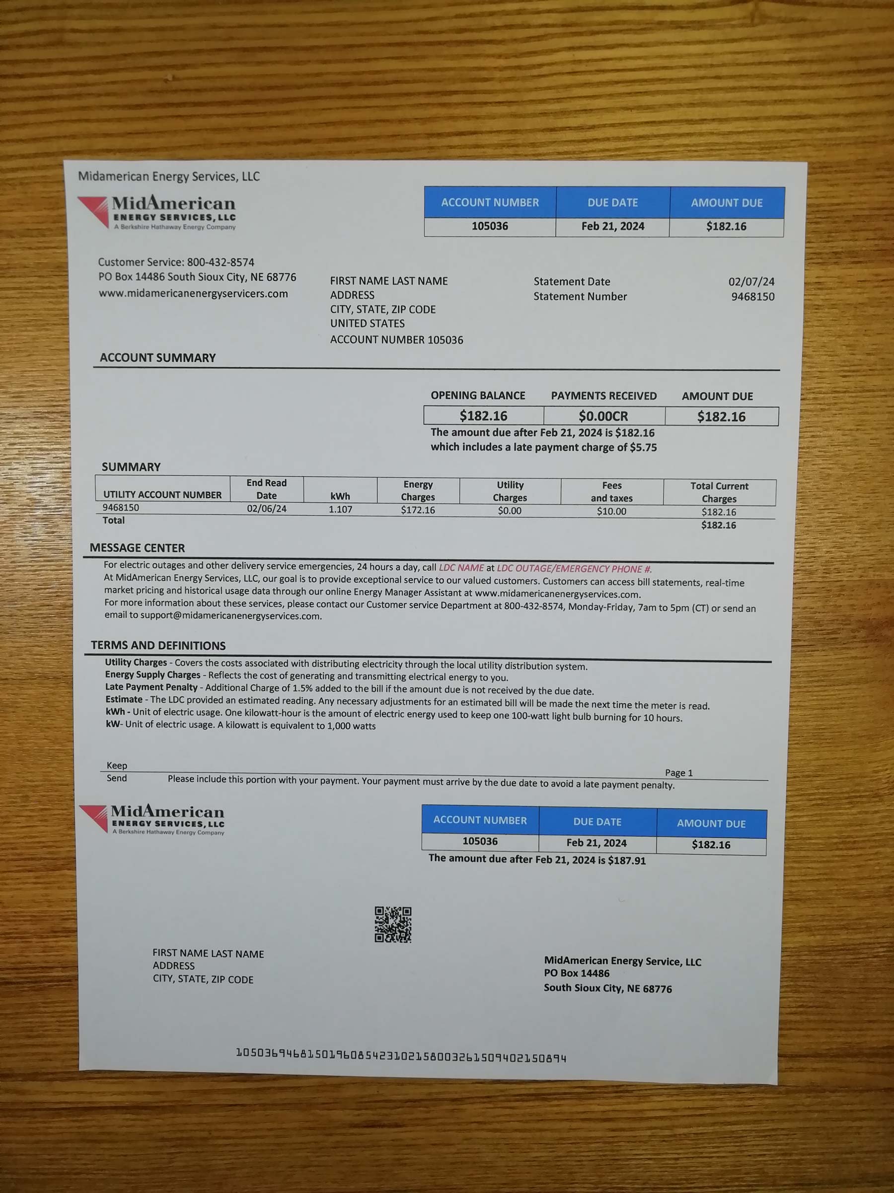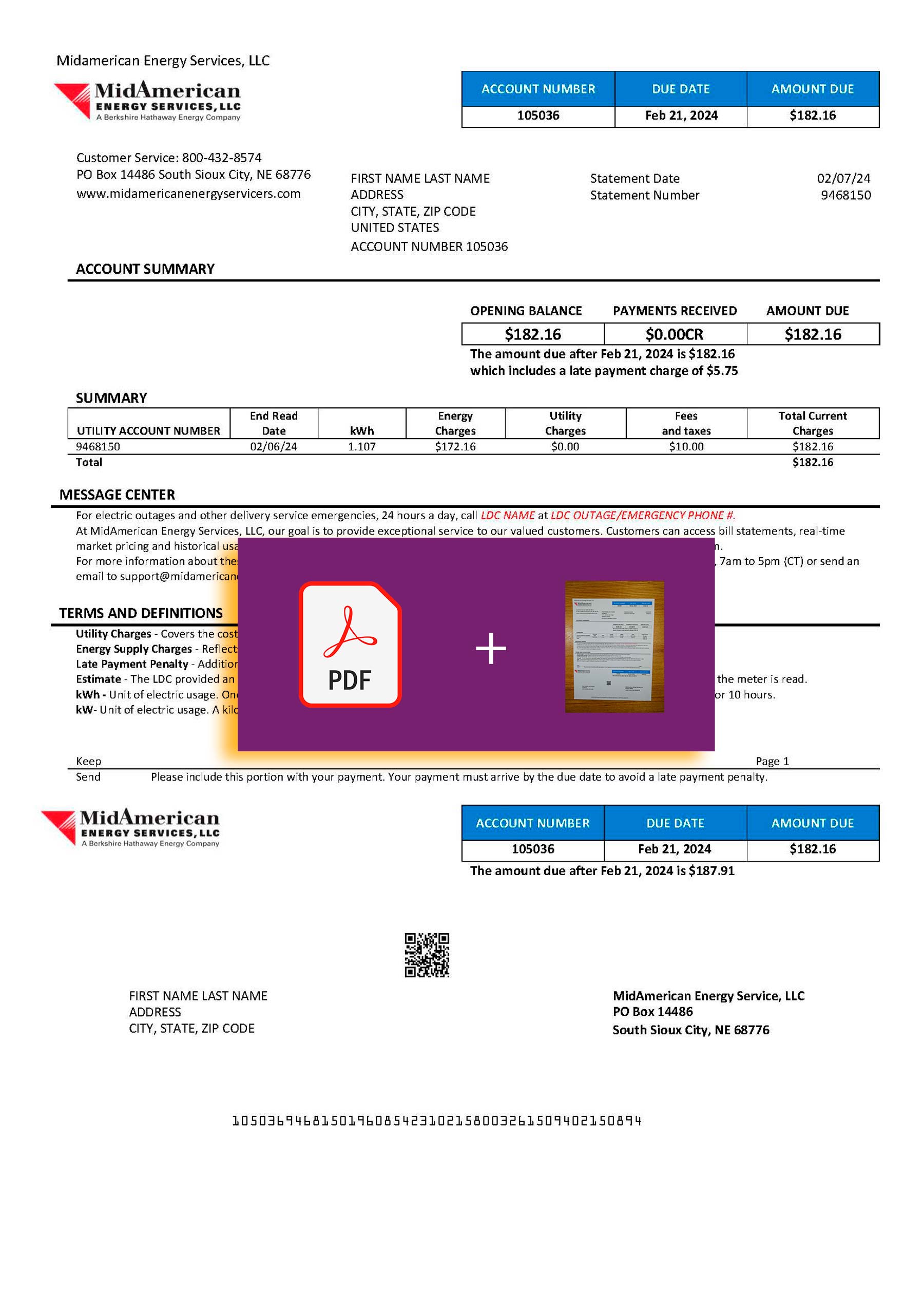 The MidAmerican Energy Nebraska bill template delivers an editable, true-to-life format designed for proof-of-address and UX documentation. You can also explore the AT&T Internet layout or the CenturyLink Nebraska phone bill for other high-quality and region-specific templates.