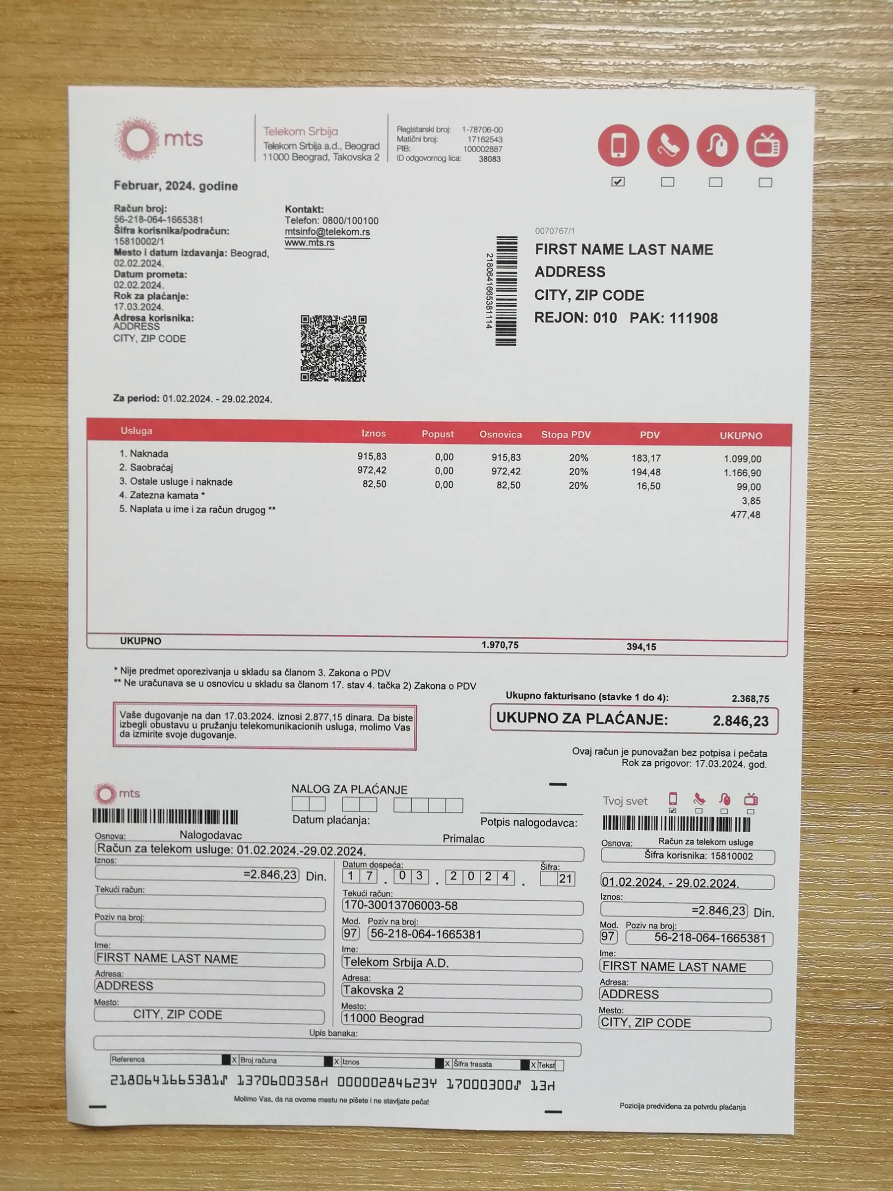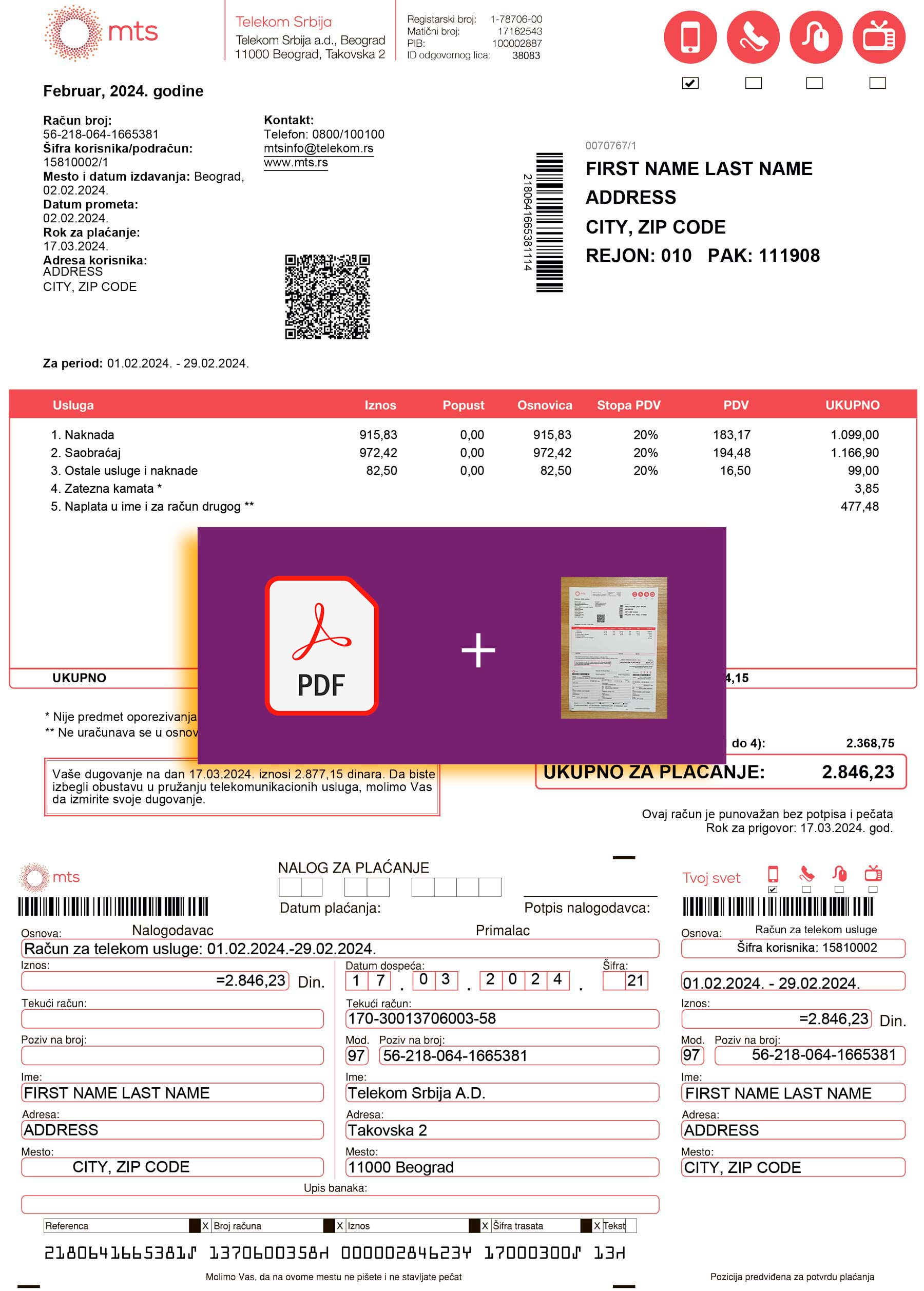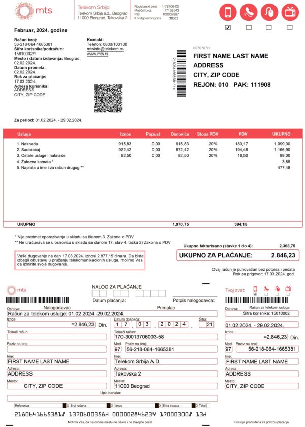 The package includes JPEG or PDF + JPEG formats with 300 DPI print-ready quality. It’s structured to reflect a typical Serbian utility billing layout with editable fields such as customer name, address, billing period, usage, and total due. You’ll receive free revisions until final approval, secure checkout protection, and 24/7 support. Files are delivered within 24 hours or sooner, ensuring quick and seamless project completion.