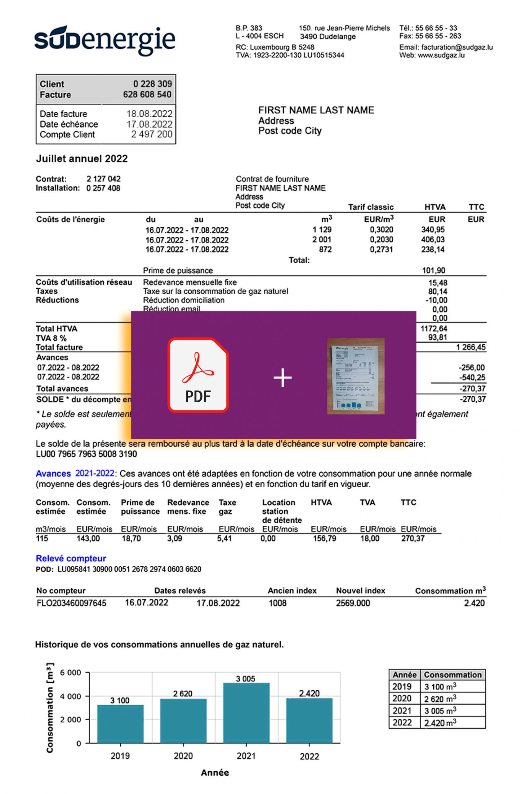 Your download includes JPEG or PDF + JPEG versions, both formatted in 300 DPI for sharp, print-ready output. The layout aligns with common Luxembourg utility structures and includes editable sections for name, address, billing period, consumption details, and totals. You’ll receive free revisions until approval, secure payment checkout, and dedicated 24/7 support. Delivery is completed within 24 hours, ensuring a fast and reliable turnaround.