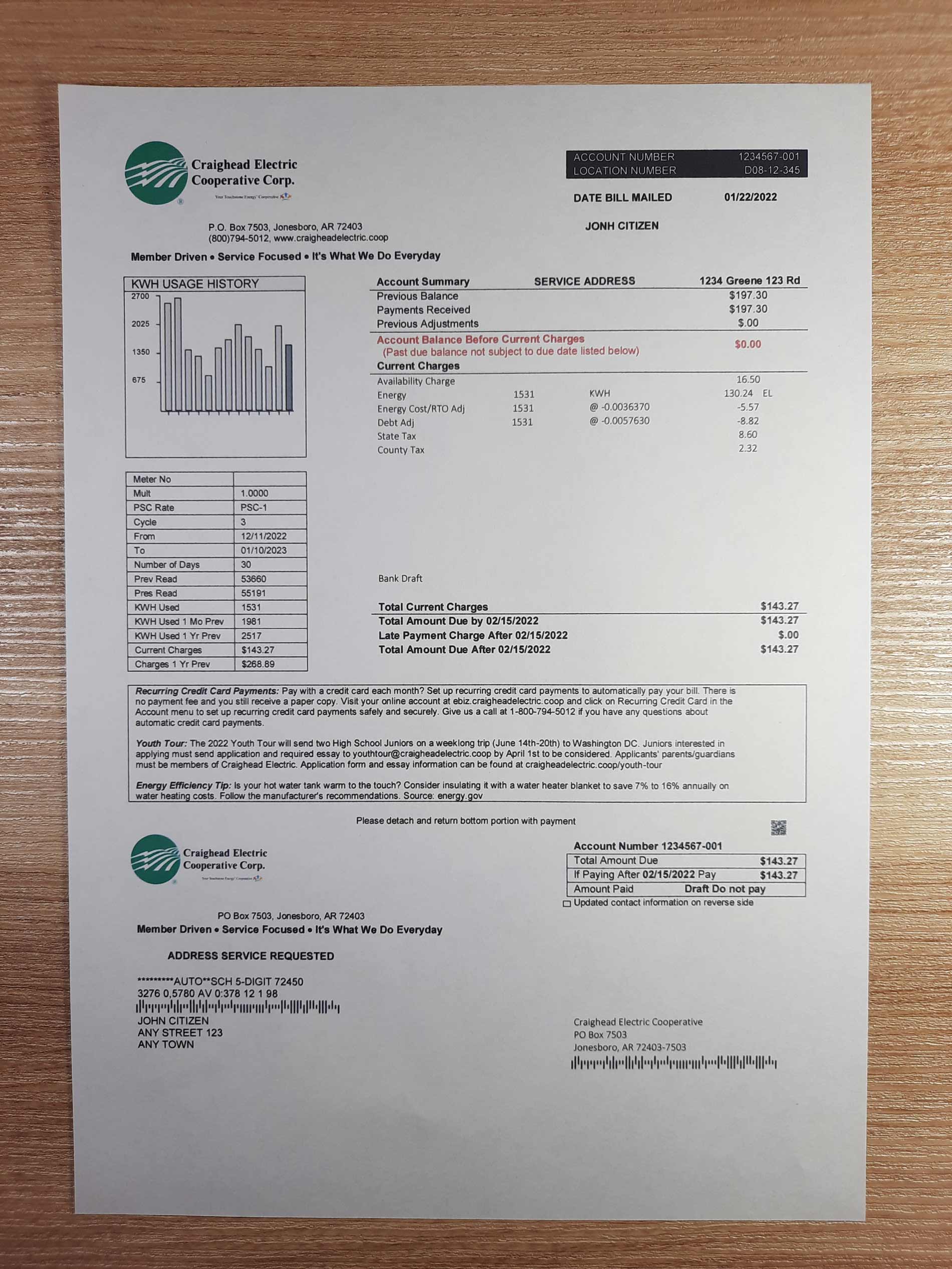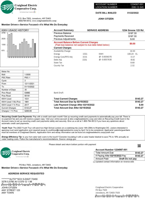 Need other designs? Browse all available custom utility bill templates for Arkansas. Download this Craighead Electric template and use it for your 2025 project—whether it’s a prototype, class, or portfolio display.