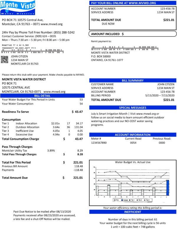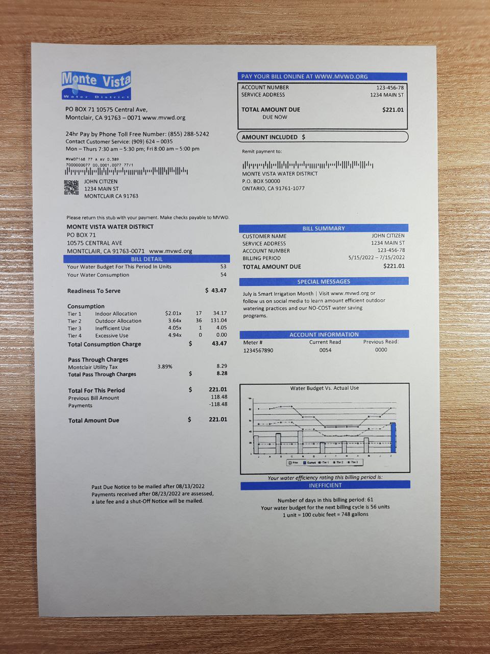 The Monte Vista Water District layout has a modern structure similar to the West Valley design and the Santa Ynez Water statement, offering cohesive templates for address verification cases.