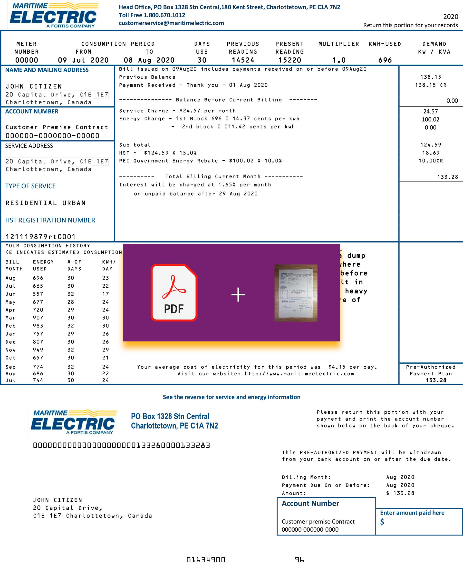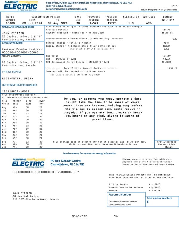 Package includes high-quality JPEG or PDF + JPEG formats, optimized for print and digital display. The structure aligns with Maritime Electric’s layout for PEI customers and includes editable fields such as account number, customer name, address, billing period, usage data, and totals. Enjoy free revisions until approval, 24-hour delivery, secure checkout, and 24/7 customer support for your convenience.