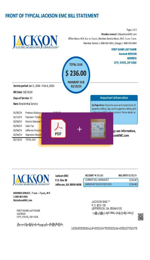 This download includes JPEG or combined PDF + JPEG formats, all rendered in 300 DPI clarity. The Savannah Utility Bill design includes editable fields such as customer name, billing address, statement period, usage metrics, and total balance. Each file is aligned with the layout of Georgia’s residential utility structure. Enjoy secure checkout, free revisions until approval, and guaranteed delivery within 24 hours, supported by 24/7 customer service.