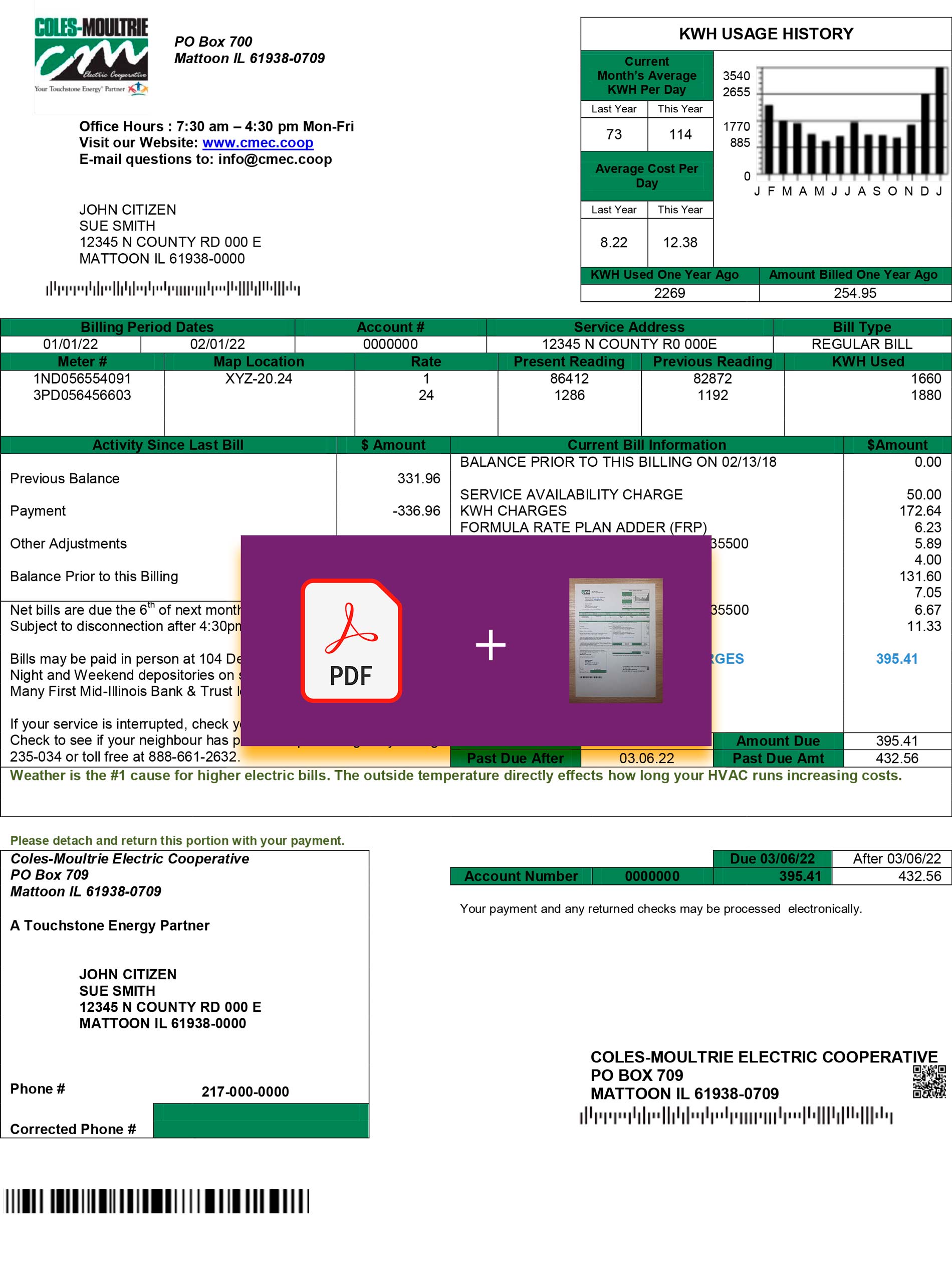 The editable Coles Moultrie Utility Bill Template (Illinois 2025 Version) offers a professionally structured and high-resolution (300 DPI) layout for residential billing presentation. This digital statement mirrors the real formatting of Coles Moultrie utility bills, with editable fields that allow precise customization for documentation, KYC verification, or proof-of-address simulations. Designed with a Done-For-You workflow, this template ensures an accurate and efficient experience for designers, compliance professionals, and business teams needing realistic visual documentation.