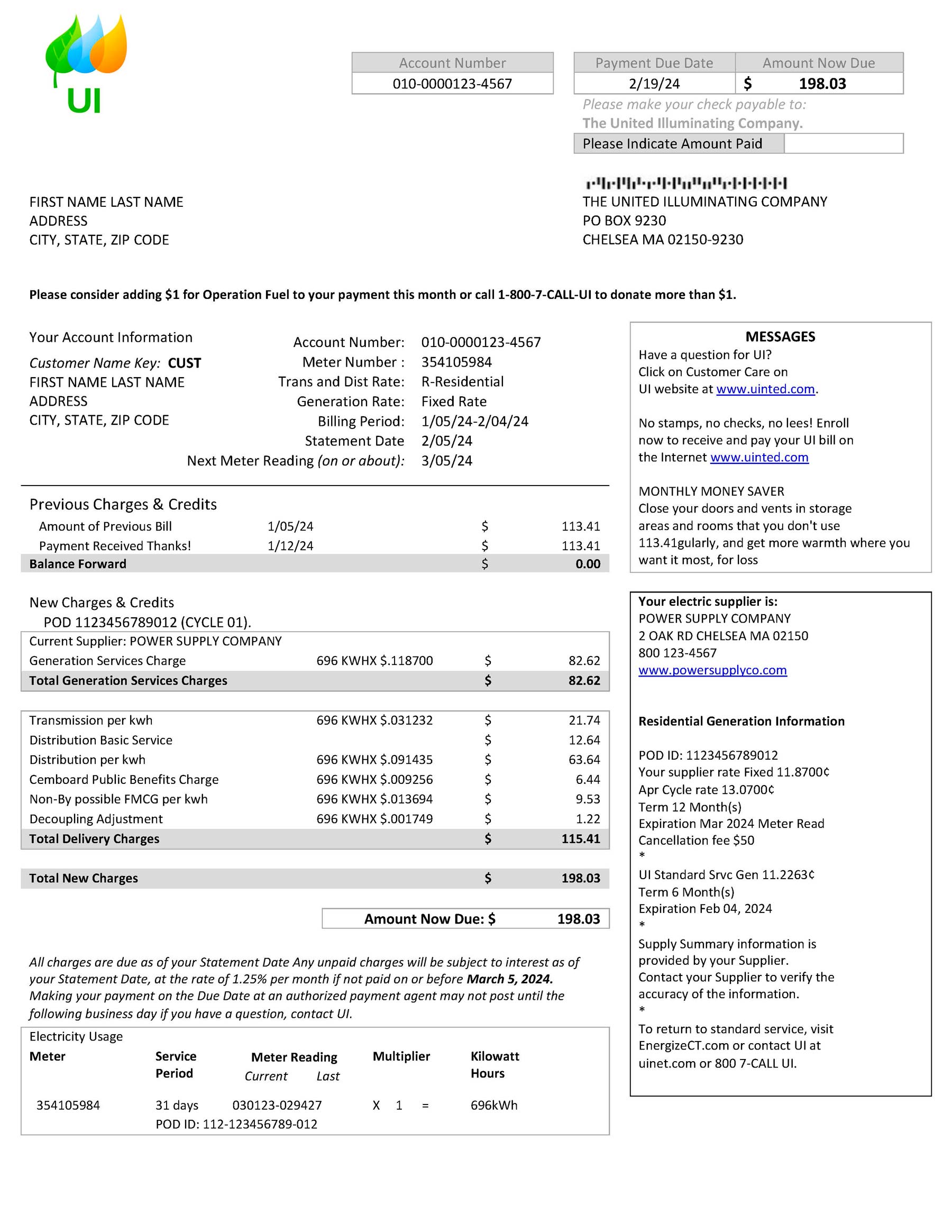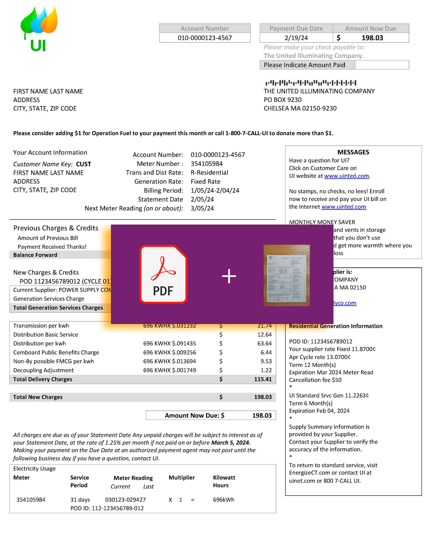 Your download includes PDF + JPEG files in 300 DPI quality, preformatted to align with the Chelsea SCG & United Illuminating layout for Massachusetts. Editable sections cover essential fields like name, service address, billing period, usage data, and amount due. You’ll receive free revisions until approval, secure checkout, and 24/7 live support, with guaranteed delivery within 24 hours.