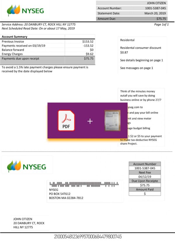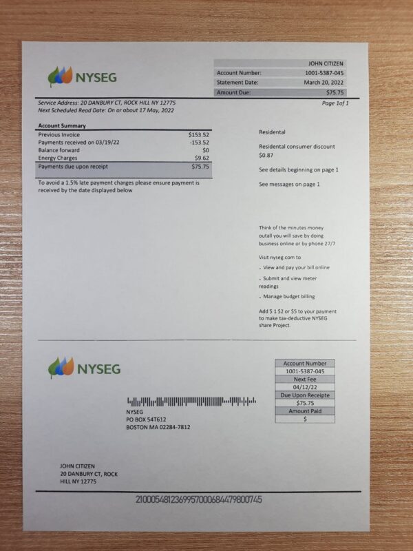 Your download includes high-quality PDF + JPEG files, both in 300 DPI for clear printing or digital use. The layout is precisely aligned with NYSEG’s Massachusetts billing style and includes editable areas for customer name, address, billing dates, and total amounts. You’ll also receive free revisions until approval, secure checkout, and 24/7 customer support. Delivery is completed within 24 hours.