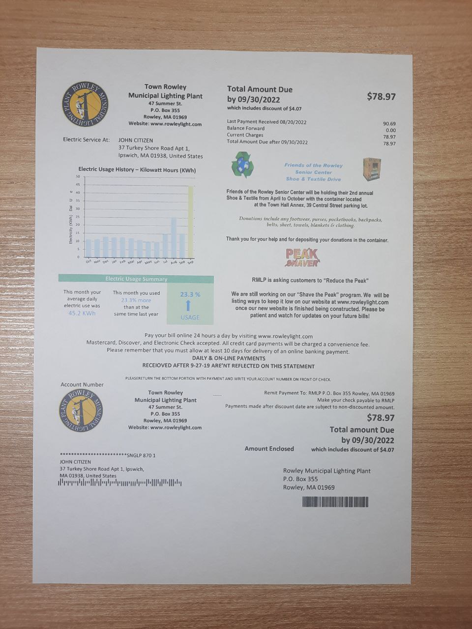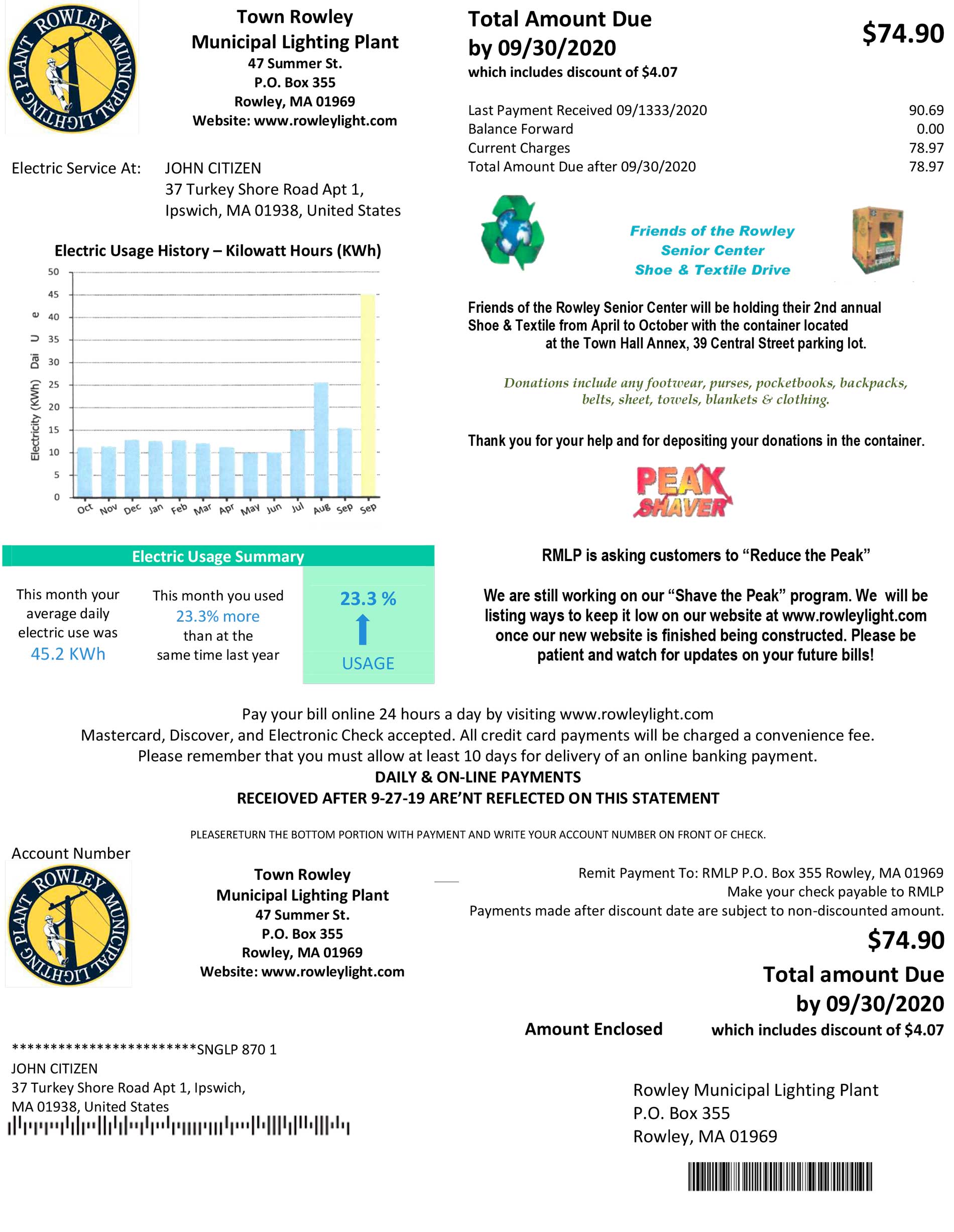 1. Select the Rowley Municipal Lighting Plant Electric Bill Template.