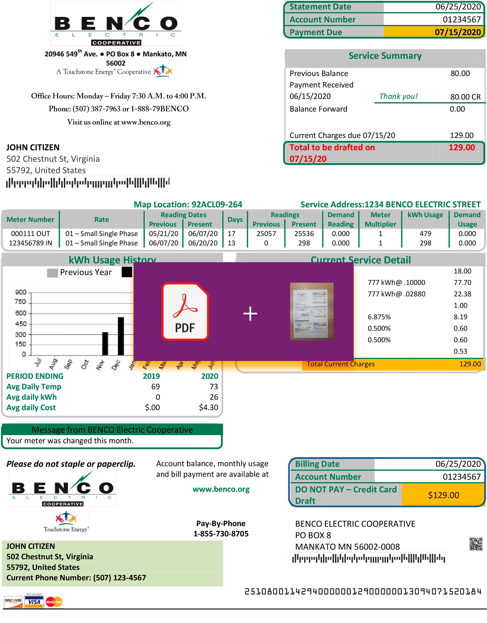 Your download includes JPEG or PDF + JPEG versions, optimized at 300 DPI. The structure aligns with BENCO Electric’s authentic Minnesota billing format. Editable areas include customer name, service address, billing cycle, meter readings, and payment summaries. Orders include free revisions until approval, guaranteed delivery within 24 hours, secure checkout, and 24/7 support to ensure a smooth experience from start to finish.