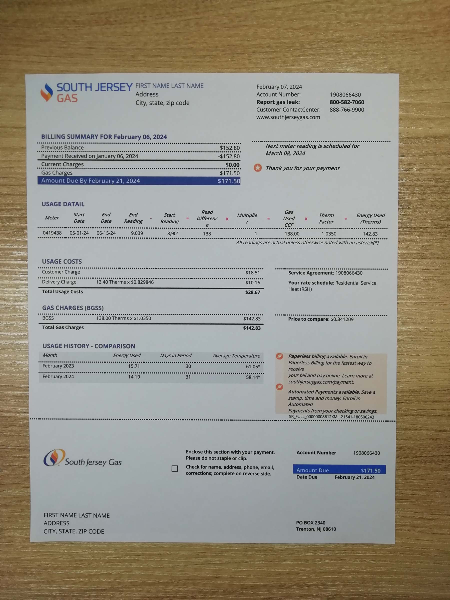This New Jersey gas bill template works seamlessly with other utilities like the water statement layout or Atlantic City Electric version, giving you cohesive options for realistic address proofs.