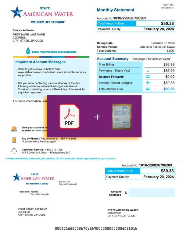 Your completed New Jersey water bill arrives as a JPEG or PDF+JPEG file, ready for digital upload or print submission.