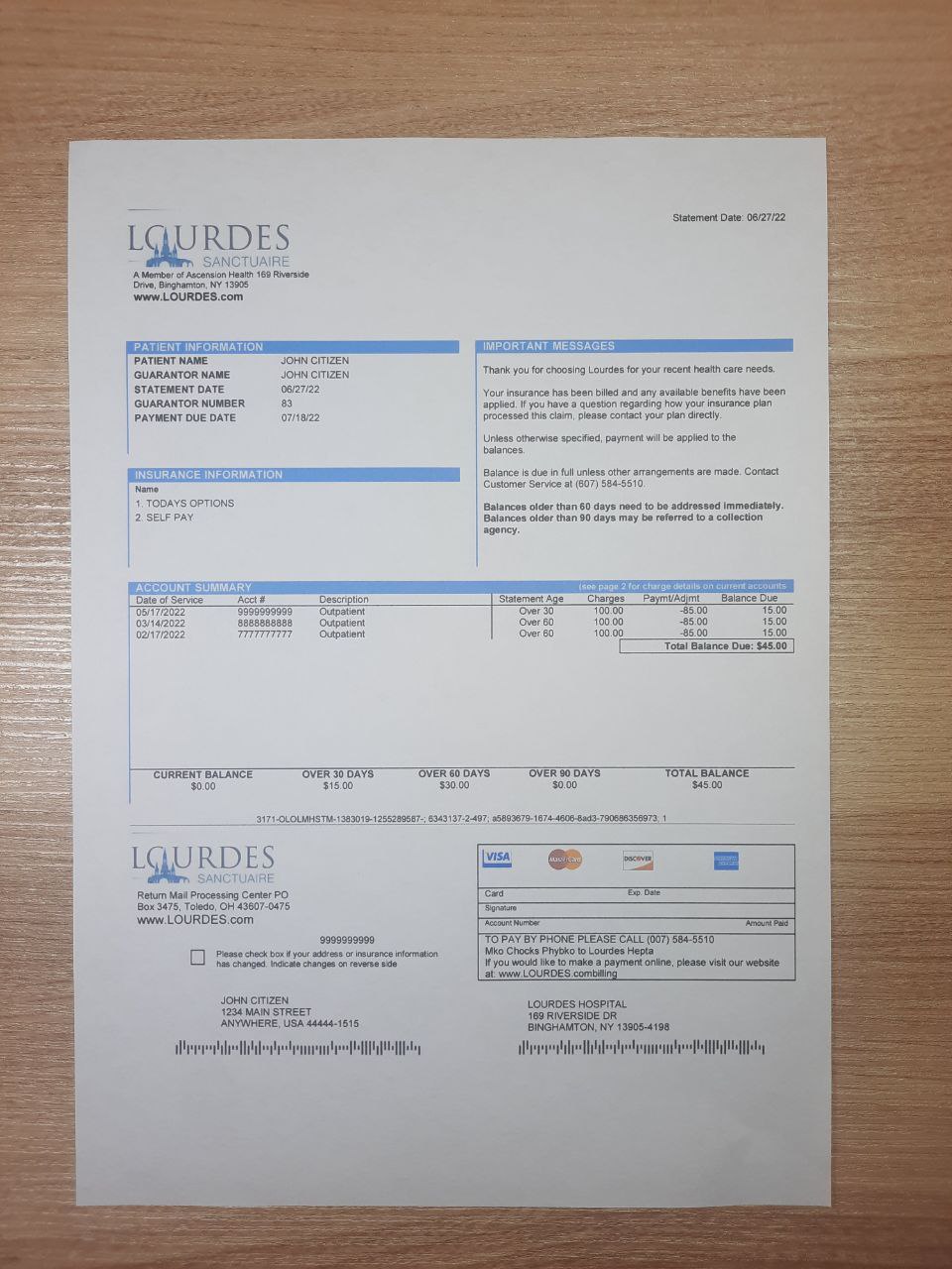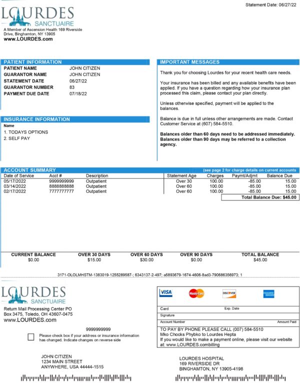 This editable Lourdes Medical Utility Statement follows the official New York format for 2025, presented in 300 DPI high resolution. It’s a Done-For-You document designed for professionals, designers, and compliance teams who require realistic billing statements for verification, KYC, and proof-of-address (POA) processes. The layout reflects authentic data flow such as billing cycle, patient account details, and payment totals, providing a clean and editable file suitable for lawful visual or documentation purposes.