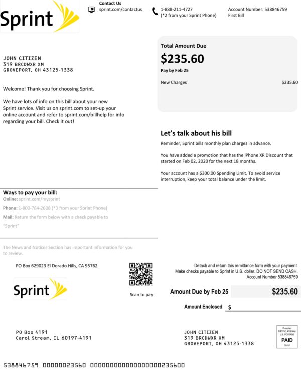 Your download includes JPEG or PDF + JPEG files in 300 DPI resolution, professionally aligned with Sprint’s Ohio telecom layout. Editable sections include customer details, statement period, usage breakdown, and total charges. Every order includes free revisions until approval, 24-hour guaranteed turnaround, secure checkout, and 24/7 customer support. Each file is optimized for print and digital presentation, ensuring professional visual quality.