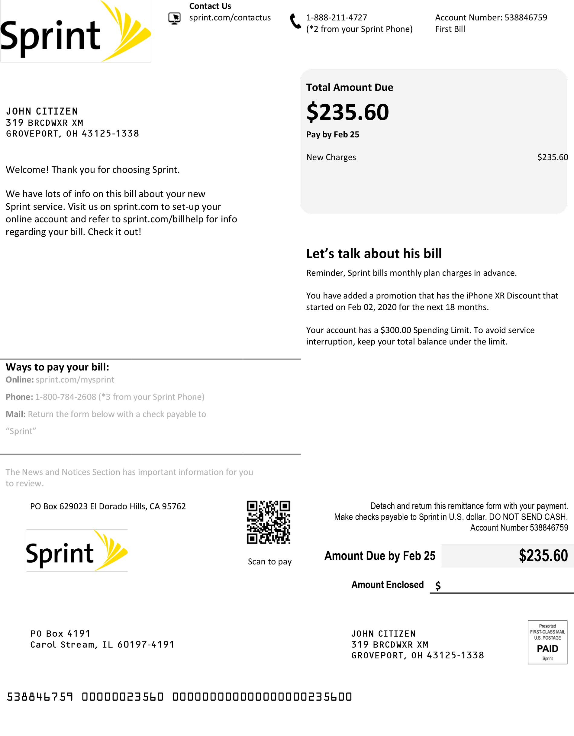 This editable Sprint bill template is intended for lawful use only, including POA/KYC compliance training, internal documentation review, and user interface visualization. It follows ethical standards and supports platform-approved, verification-related simulations.