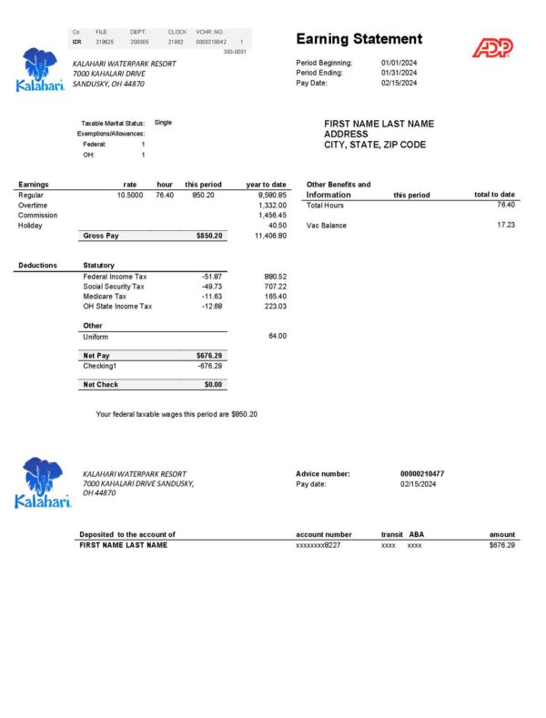The Editable Ohio Kalahari Waterpark Utility Bill Template – Updated 2025 Layout delivers a professional, high-resolution (300 DPI) format modeled after real Ohio water billing documents. This editable file is ideal for designers, developers, compliance specialists, and KYC reviewers who need realistic visual materials for verification or UX/UI testing. It offers a Done-For-You setup — simply submit your details, and our team will handle customization, ensuring each field (usage, totals, billing cycle) is formatted accurately and professionally.