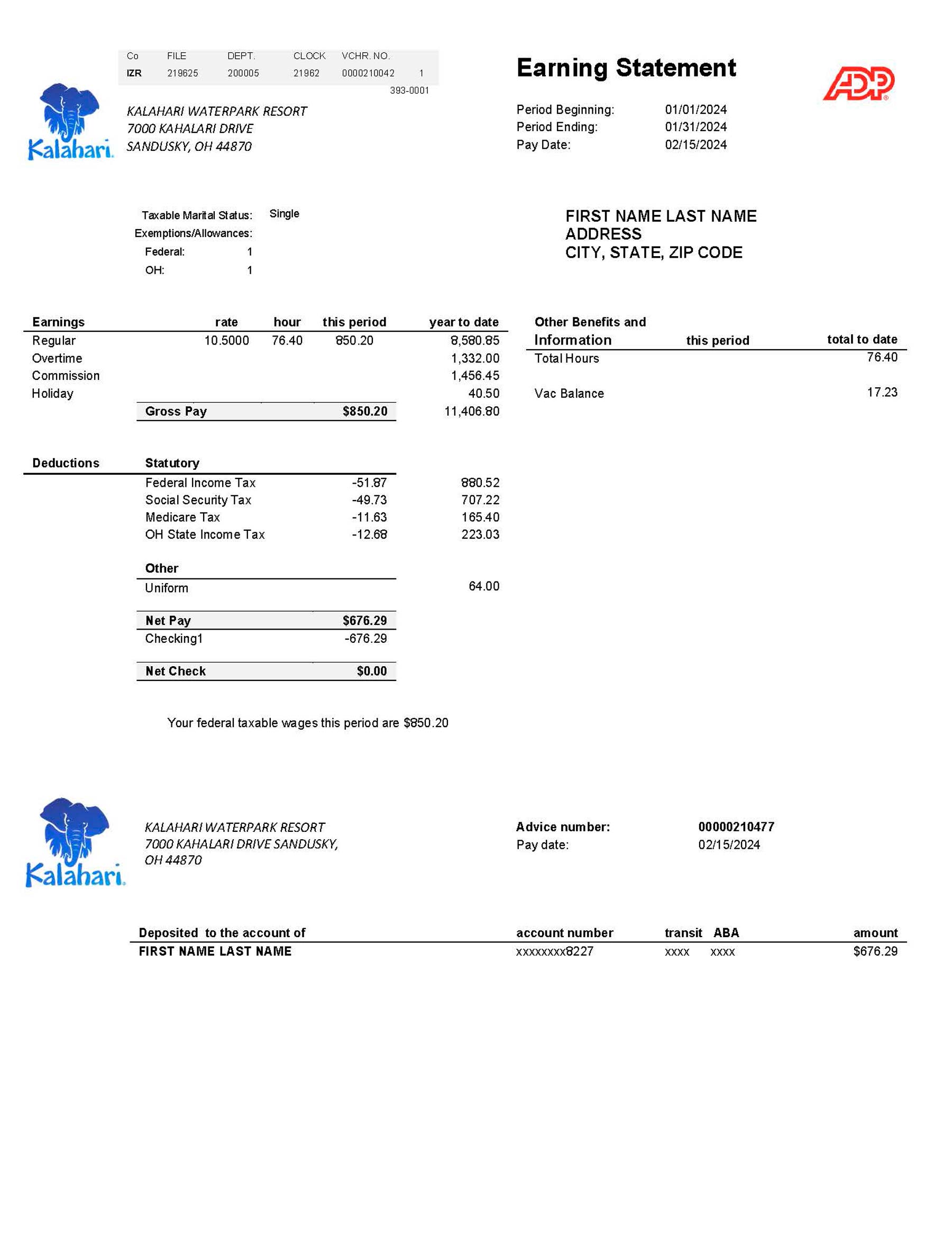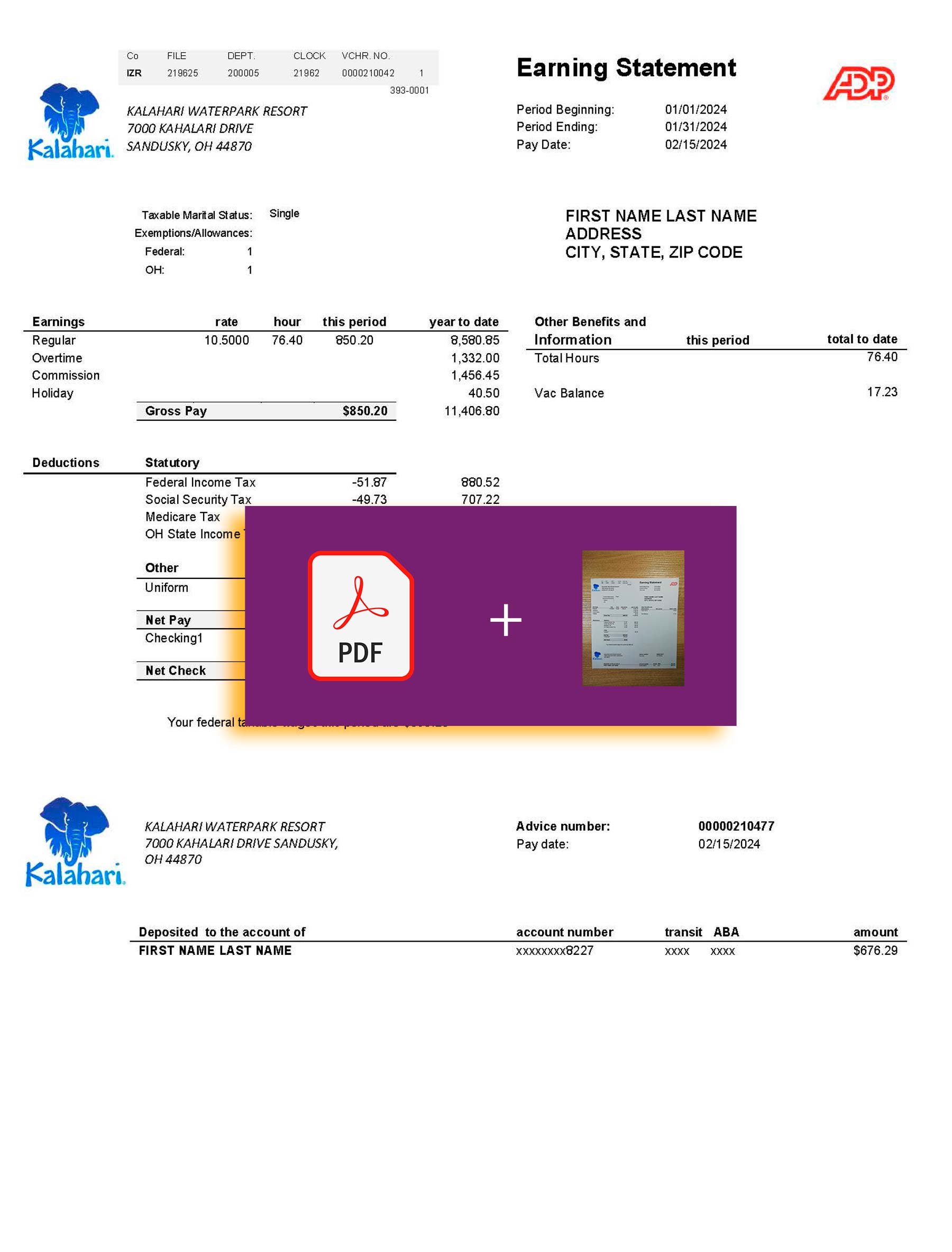 Your package includes JPEG or PDF + JPEG files in 300 DPI resolution, aligned with the recognizable Kalahari Waterpark layout used across Ohio. Editable fields include the customer name, address, billing period, service usage, and total amount due. Every order includes free revisions until you’re satisfied, secure payment processing, 24-hour turnaround, and 24/7 client support for a frictionless experience.
