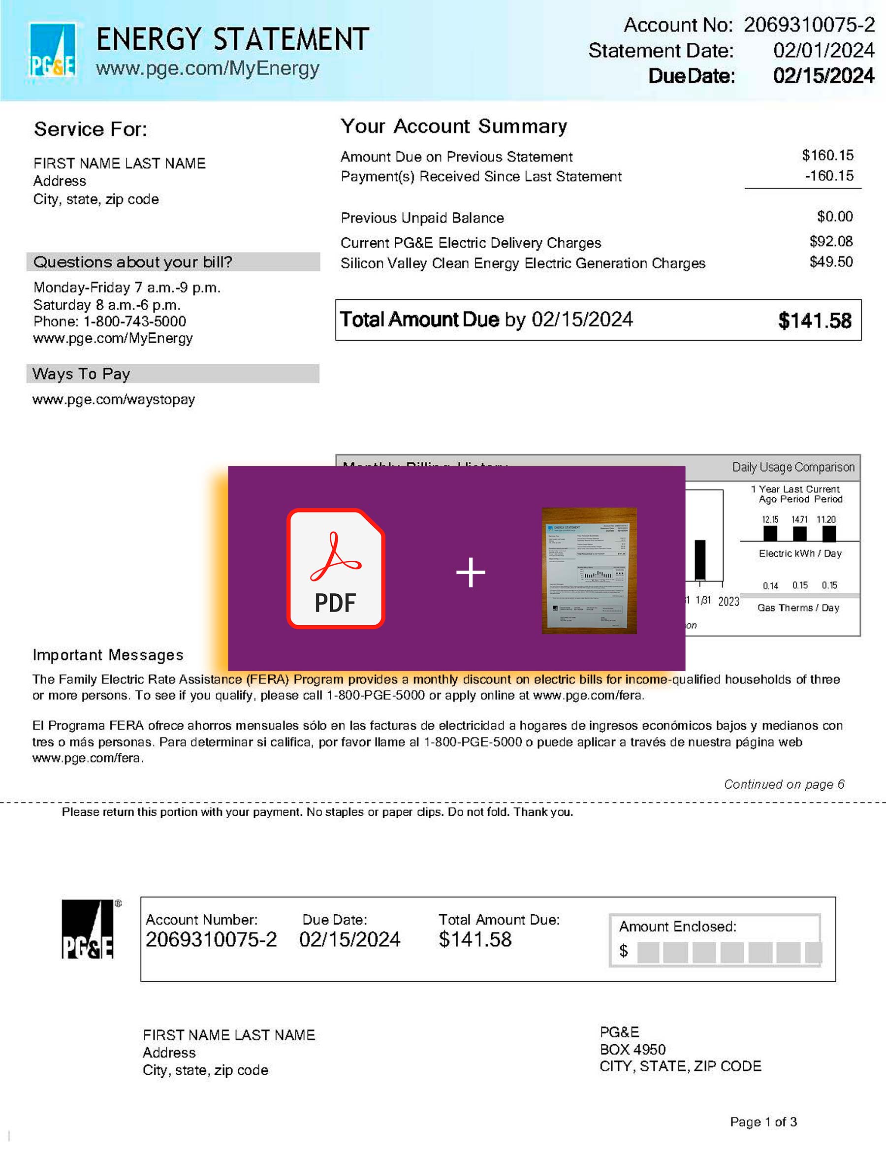 The Oregon PG&E Utility Bill Template (Customizable 2025 Format) is a realistic, editable electric statement built for documentation, compliance training, and POA/KYC simulations. Delivered in 300 DPI high-resolution quality, it mirrors the structured design and data layout of authentic PG&E billing formats. This Done-For-You digital file helps designers, developers, and verification professionals create accurate visual scenarios for testing, UX, and address confirmation workflows without manual editing.