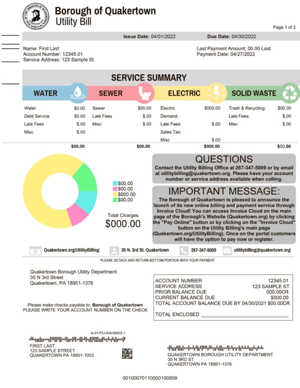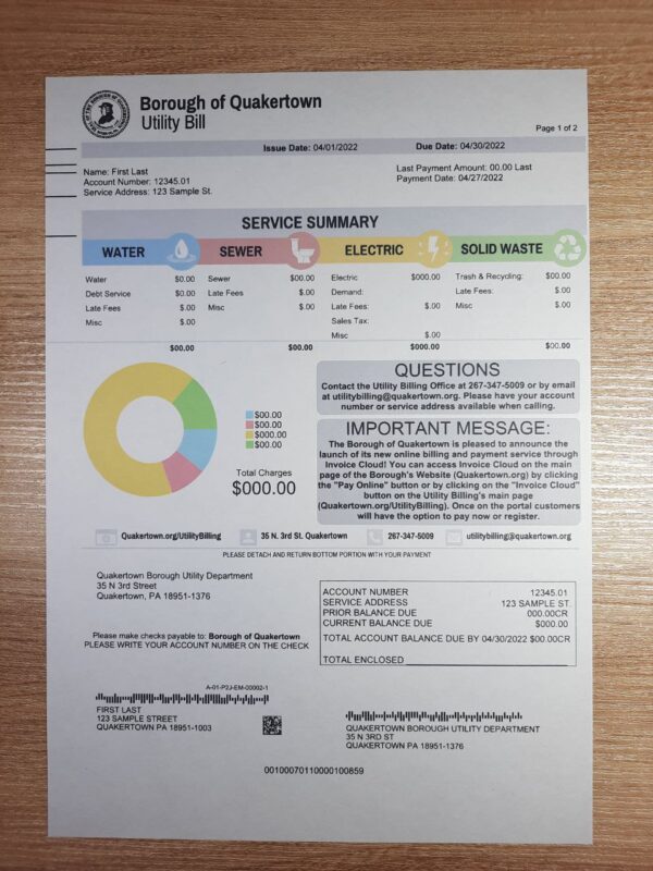 This Borough Utility bill template provides realistic formatting perfect for address verification and testing use. You can also explore the Revenue Water layout or the American Water statement for related editable templates.