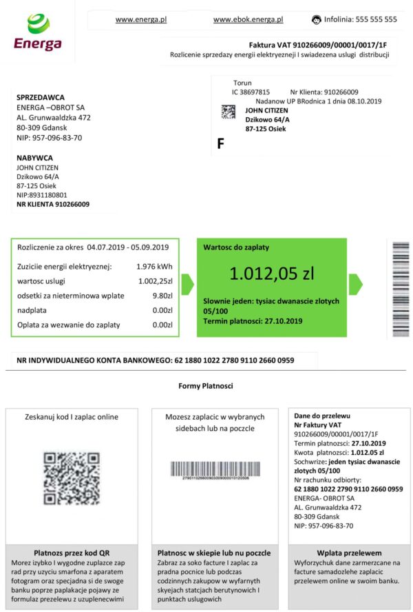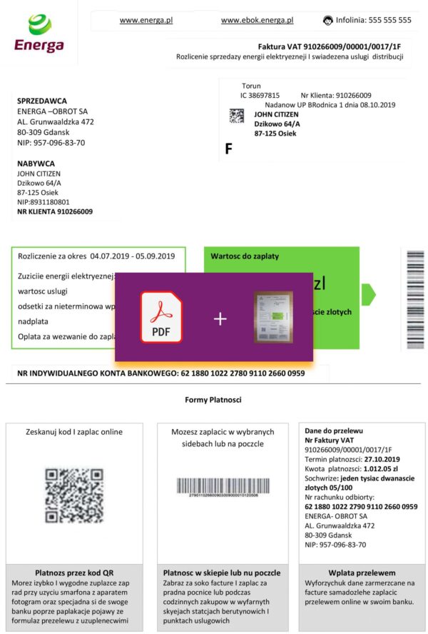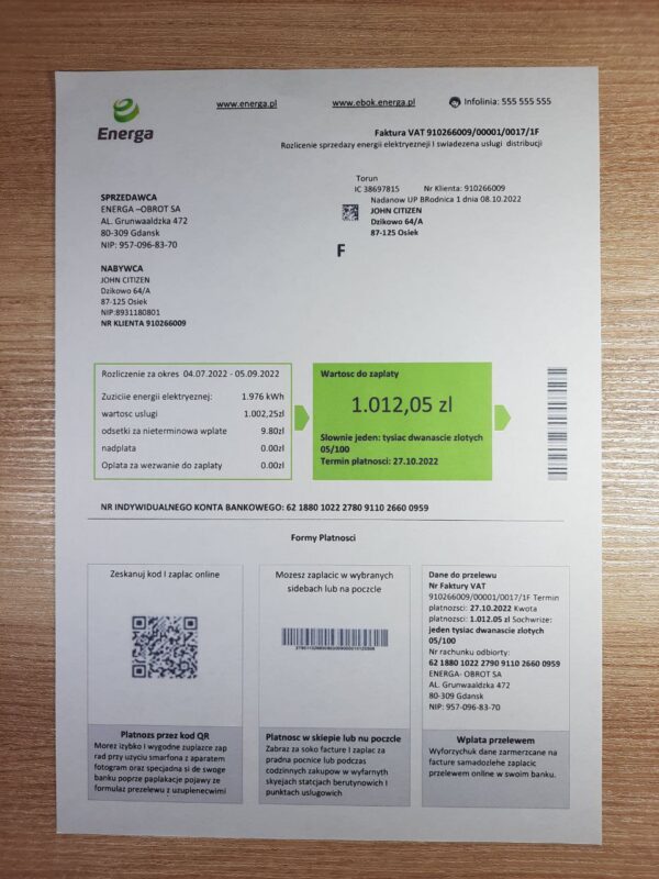 You receive the file in JPEG or PDF + JPEG format, ready for immediate use. Each document is built to match Energa’s real layout for Poland, maintaining accurate formatting, spacing, and structure. All main fields—customer name, service address, usage, and totals—are editable. Included are free revisions until approved, 24-hour turnaround, secure payment processing, and 24/7 live support for any questions or design updates.