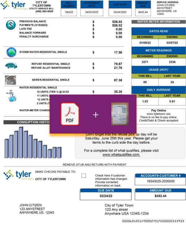 This editable Tyler Utility Bill Template for Texas is a high-resolution digital statement (300 DPI) designed for professional use in documentation, compliance, and interface verification. Delivered as a fully editable PDF + JPG, it follows the authentic layout of Tyler city utility statements and is ideal for proof-of-address (POA) or KYC simulations. Every file is customized by our design team — you simply provide the details, and we handle the rest through a Done-For-You workflow.