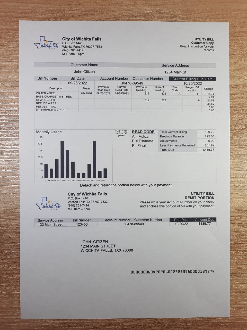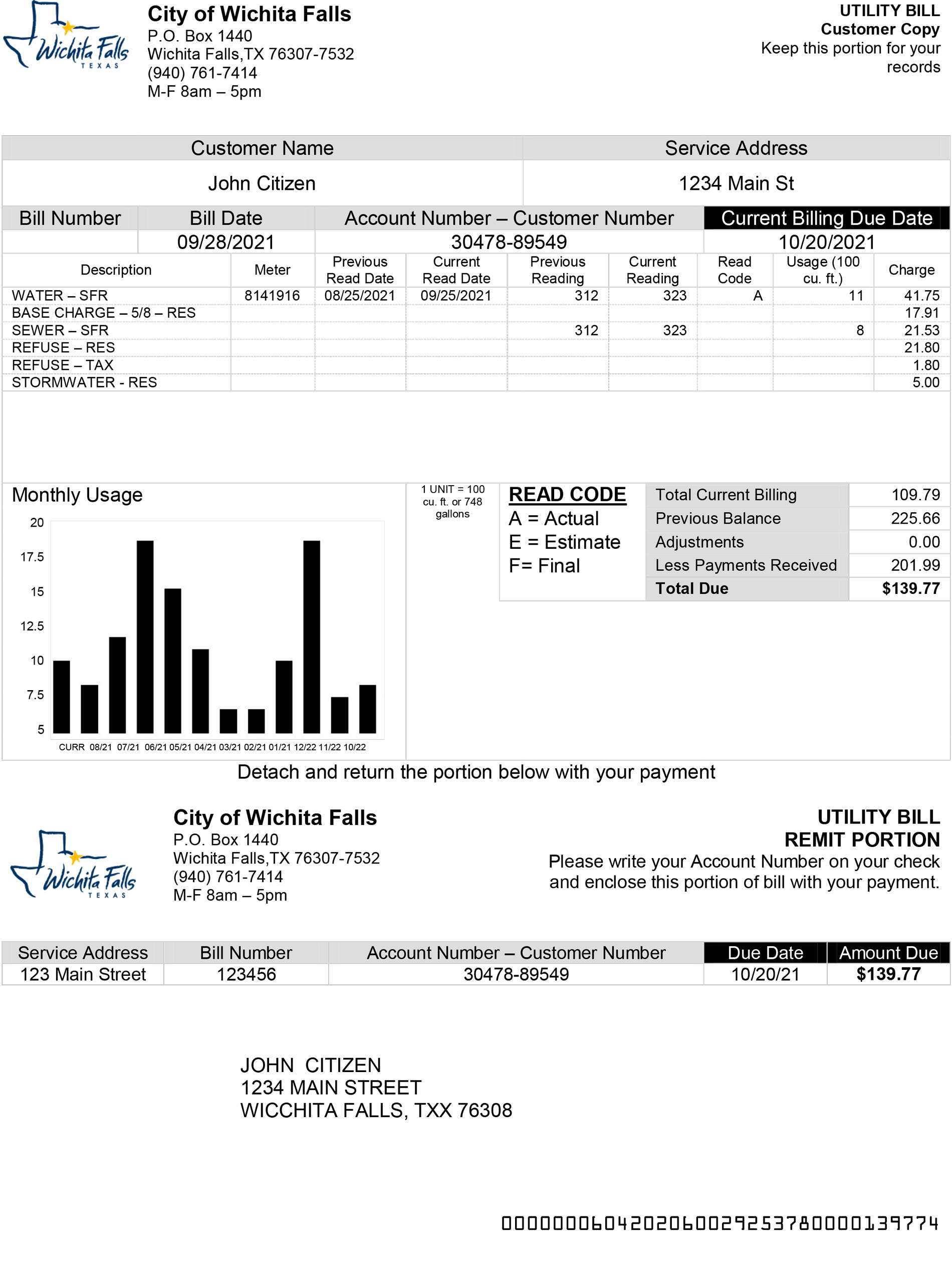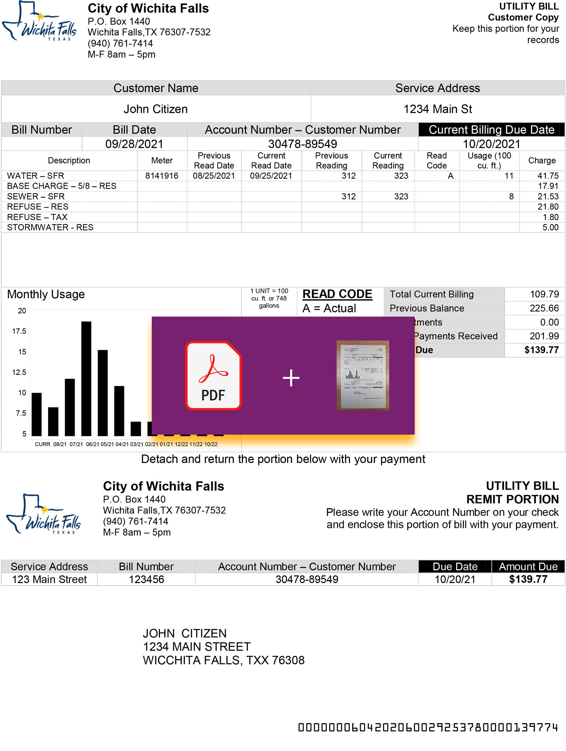 The Wichita Falls Texas utility bill layout is an editable, high-resolution file for mock verification or learning applications. You might also explore the Cirro Energy template or the Blue Energy design for alternative local providers.