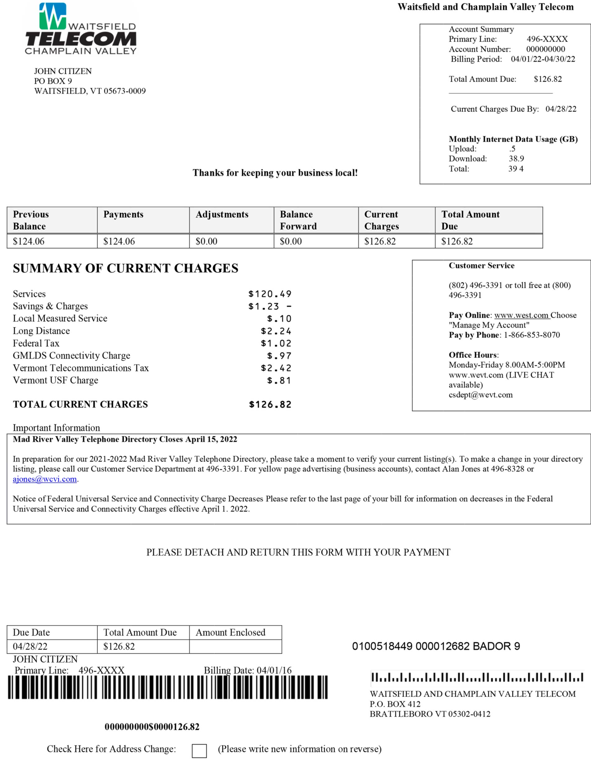 Your download includes JPEG or PDF + JPEG versions of the Waitsfield Telecom layout, adapted for Vermont. Each file contains editable elements such as customer name, account number, service address, billing period, and amount due. Every file is crafted in 300 DPI for print and digital clarity. You’ll receive free revisions until approval, guaranteed 24-hour turnaround, secure payment processing, and dedicated 24/7 customer support for your order.