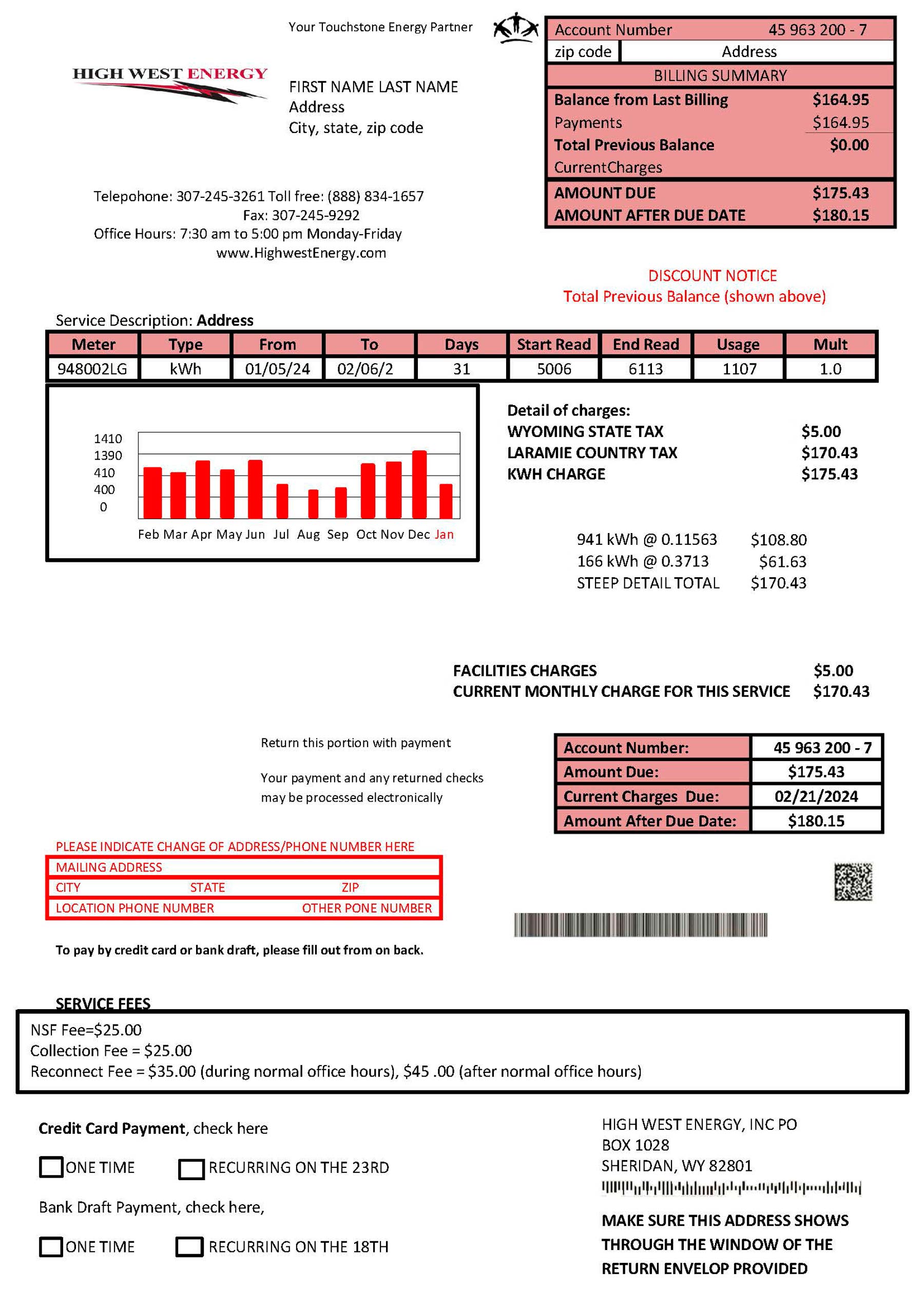 The download package includes high-resolution JPEG or PDF + JPEG files. Each file is aligned with Wyoming-style billing layouts and includes editable sections for customer name, service address, usage, and totals. You’ll get free revisions until the final version is approved, guaranteed delivery within 24 hours, and secure checkout. Files are ready for both print and digital use, and our support team is available 24/7 for assistance.