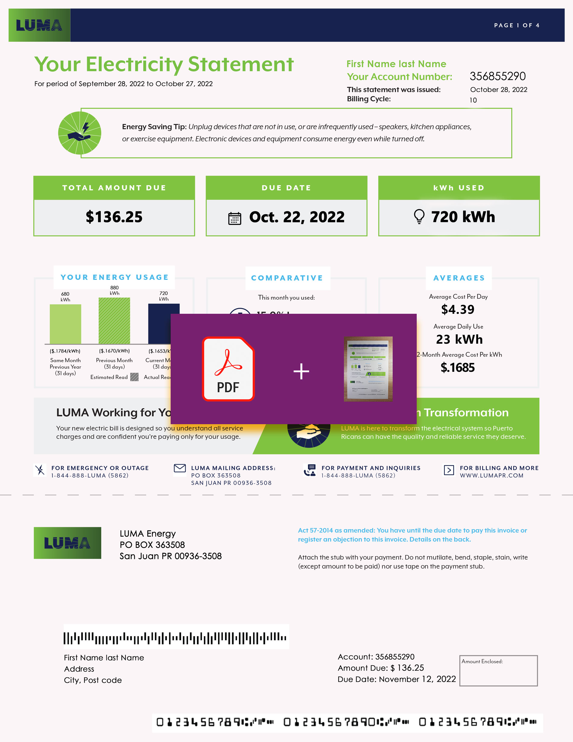 Your completed utility bill arrives as a JPEG or PDF+JPEG file, ready for digital upload or print submission.